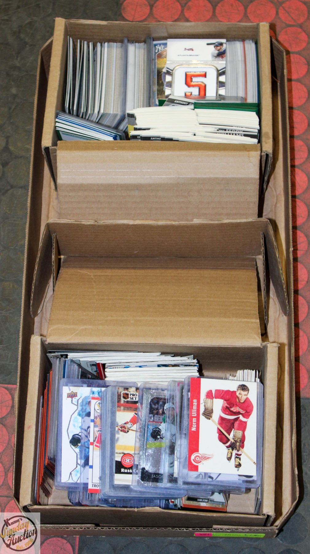 COLLECTABLE CARDS, INCL. 1 BOX OF HOCKEY CARDS (MANY IN HARD COVERS), 1 BOX OF BASEBALL, BASKETBALL AND NFL CARDS INCLUDING ROOKIES AND SPECIALTY CARDS **ALL ITEMS MUST BE REMOVED BY 5PM SATURDAY, MAY 10TH 2025. ALL REMAINING ITEMS WILL BE SUBJECT TO A $6.00 PER DAY STORAGE CHARGE. ANY ITEMS REMAINING AFTER MONDAY, MAY 26TH 2025 WILL BE CONSIDERED FORFEITED. NO REFUNDS WILL BE ISSUED FOR FORFEITED ITEMS. TO SCHEDULE A PICK UP APPOINTMENT CLICK HERE