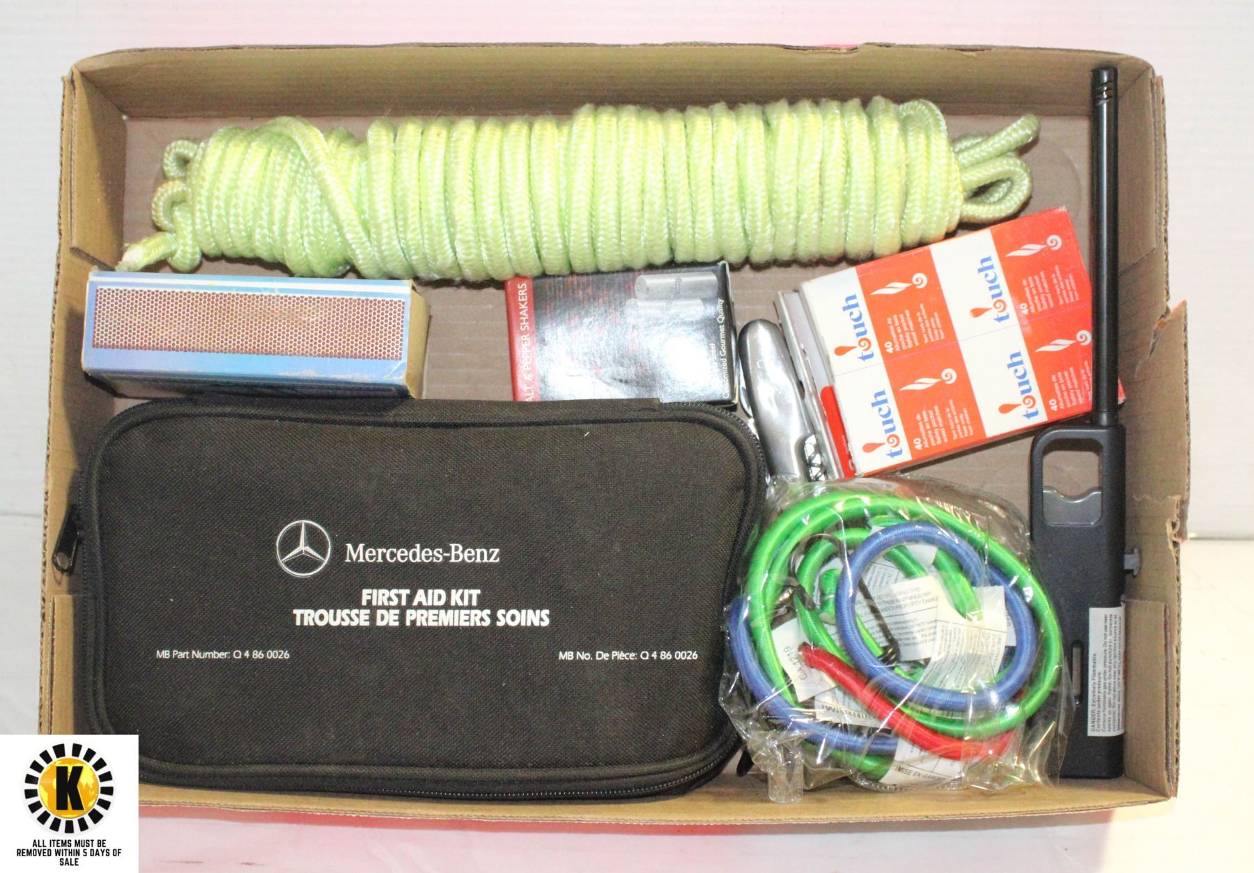 FLAT WITH FIRST AID KIT/AND MISC SURVIVAL ITEMS
