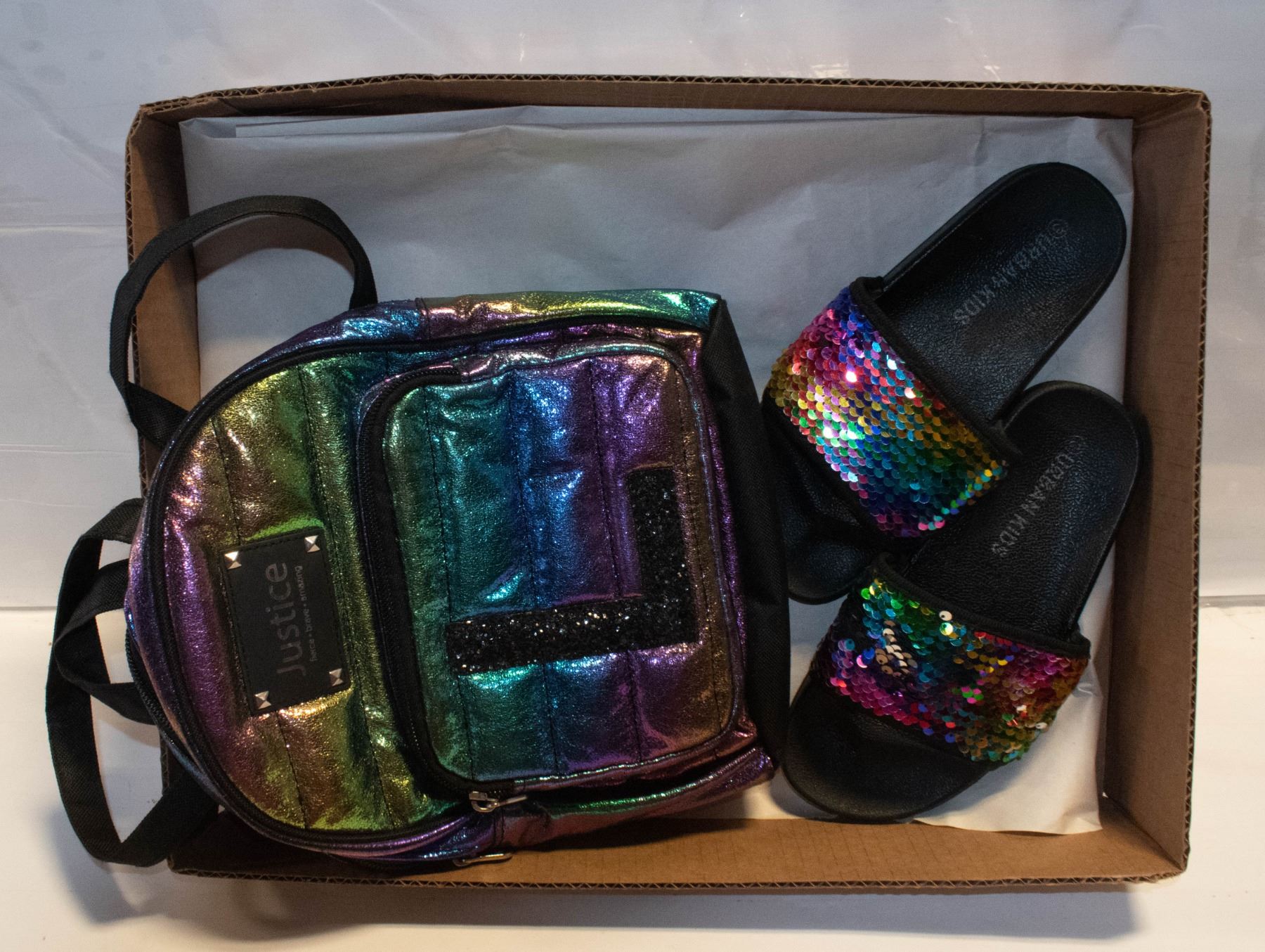 PURSE WITH PAIR OF URBAN KIDS SEQUENCED SUMMER SANDALS - SIZE 3