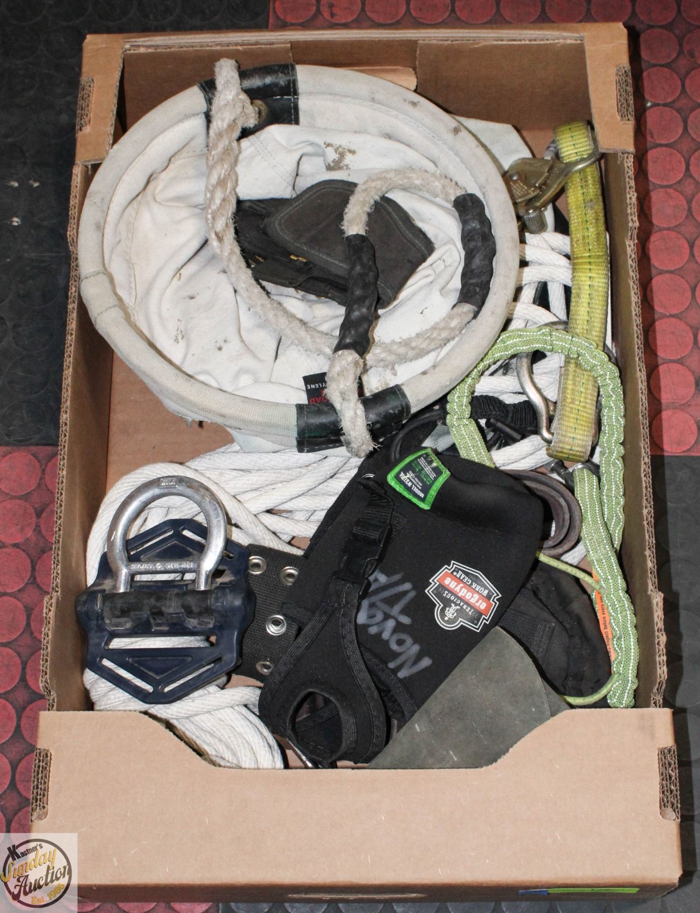ROPE, TOOL FALL PRO LANYARD, LEATHER TOOL BELT AND SEVERAL POUCHES **ALL ITEMS MUST BE REMOVED BY 5PM SATURDAY, MAY 31ST 2025. ALL REMAINING ITEMS WILL BE SUBJECT TO A $6.00 PER DAY STORAGE CHARGE. ANY ITEMS REMAINING AFTER MONDAY, JUNE 16TH 2025 WILL BE CONSIDERED FORFEITED. NO REFUNDS WILL BE ISSUED FOR FORFEITED ITEMS. TO SCHEDULE A PICK UP APPOINTMENT CLICK HERE