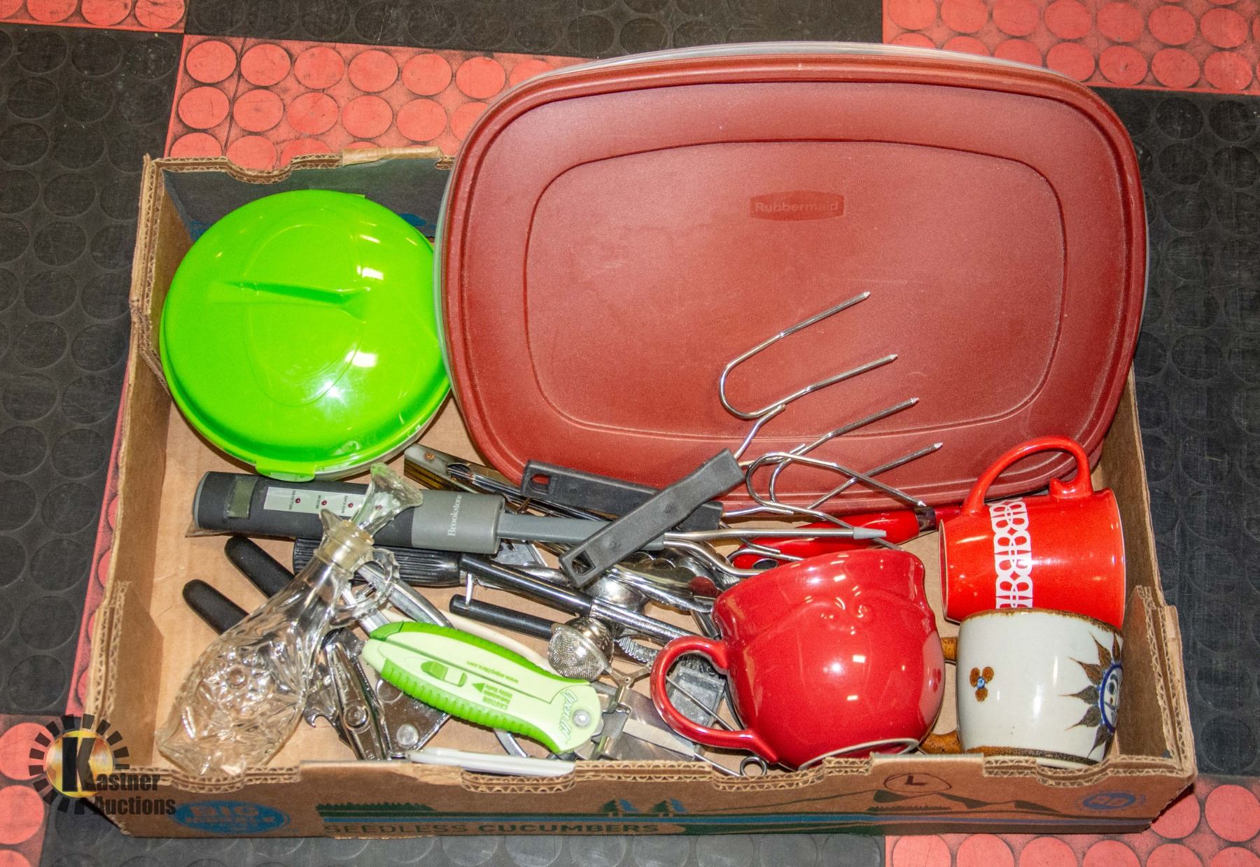 CONTAINER WITH LID, FOOD STORAGE CONTAINER WITH COMPARTMENTS, VARIOUS KITCHEN UTENSILS & CUPS **ALL ITEMS MUST BE REMOVED BY 5PM SATURDAY, FEBRUARY 24TH 2024. ALL REMAINING ITEMS WILL BE SUBJECT TO A $6.00 PER DAY STORAGE CHARGE. ANY ITEMS REMAINING AFTER MONDAY, MARCH 11TH, 2023 WILL BE CONSIDERED FORFEITED. NO REFUNDS WILL BE ISSUED FOR FORFEITED ITEMS. TO SCHEDULE A PICK UP APPOINTMENT CLICK HERE