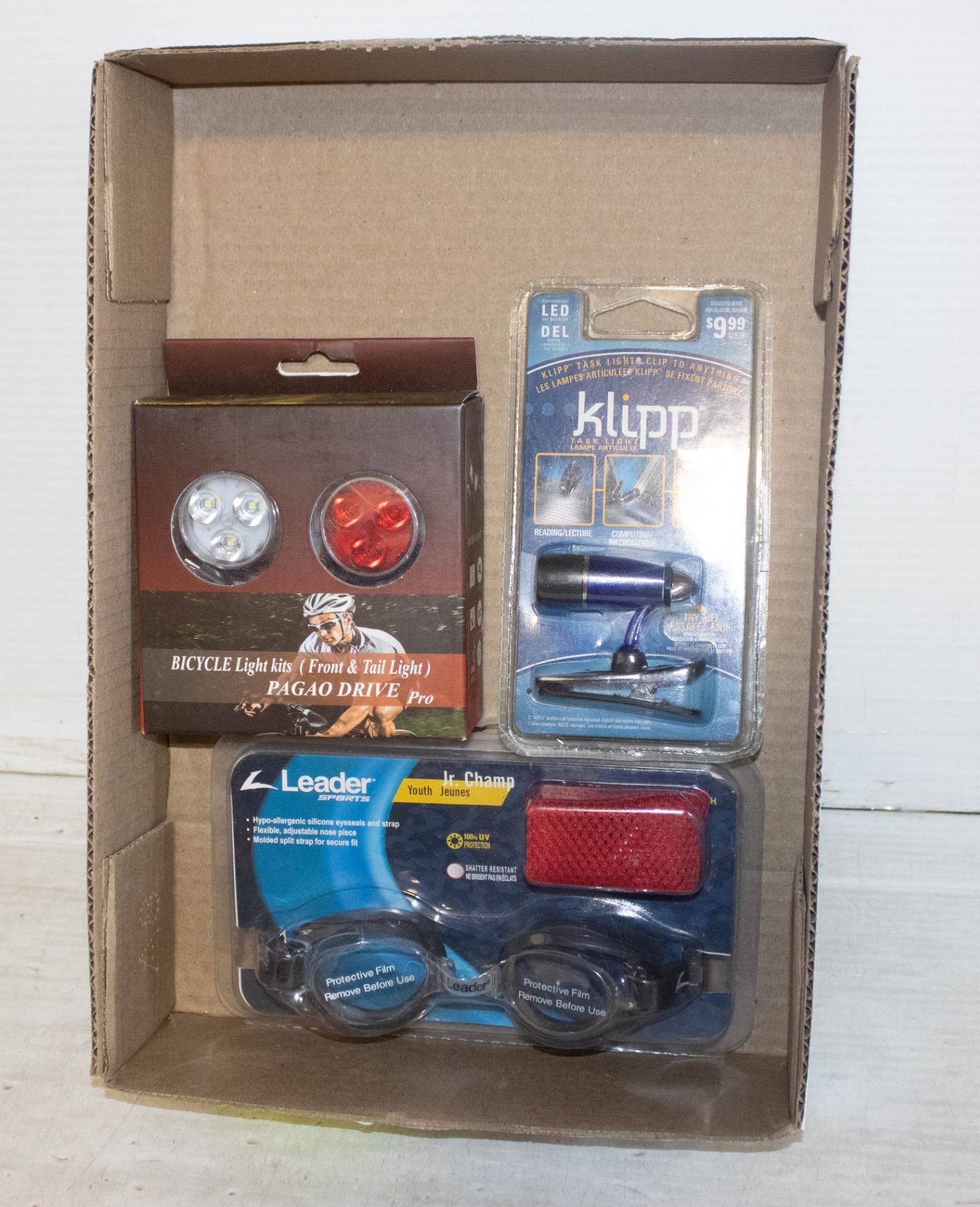 FLAT WITH NEW BIKE LIGHTS & SWIMMING GOGGLES