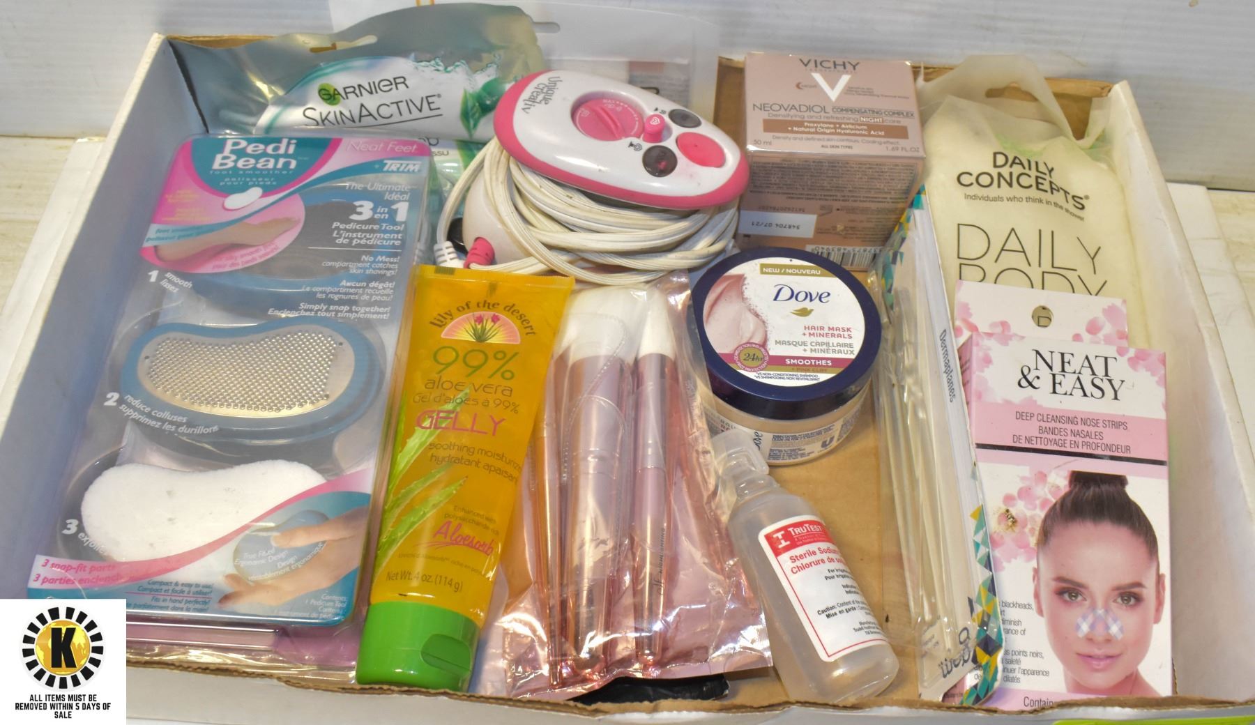 DEEP CLEANSING NOSE STRIPS, ALOE VERA MOISTURIZER, MAKEUP BRUSHES, PEDI-BEAN PEDICURE TOOL, ETC.