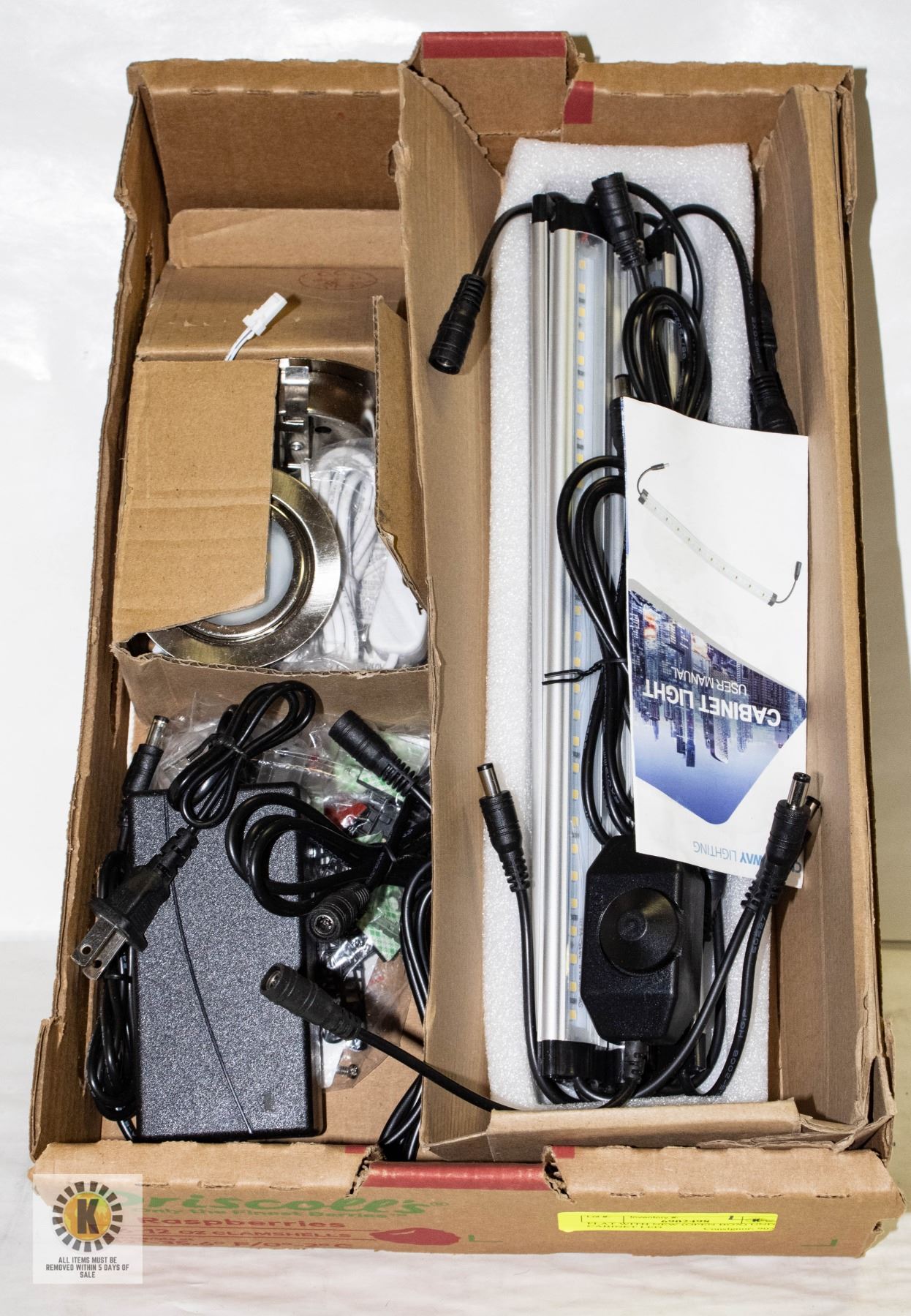 ACCENT LIGHTS INCL. SIX 12"-LONG LED STRIPLIGHTS, AC PLUGIN AND 3 LED PUCK LIGHTS **ALL ITEMS MUST BE REMOVED BY 5PM SATURDAY, APRIL 12TH 2025. ALL REMAINING ITEMS WILL BE SUBJECT TO A $6.00 PER DAY STORAGE CHARGE. ANY ITEMS REMAINING AFTER MONDAY, APRIL 28TH 2025 WILL BE CONSIDERED FORFEITED. NO REFUNDS WILL BE ISSUED FOR FORFEITED ITEMS. TO SCHEDULE A PICK UP APPOINTMENT CLICK HERE