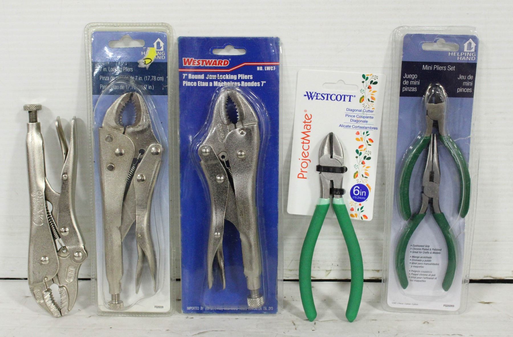 NEW 6"-SIDE CUTTERS, NEW NEEDLENOSE AND SIDE CUTTER SET AND TWO ADDITIONAL NEW 7"-VICE GRIP PLIERS **ALL ITEMS MUST BE REMOVED BY 5PM SATURDAY, SEPTEMBER 2ND 2024. ALL REMAINING ITEMS WILL BE SUBJECT TO A $6.00 PER DAY STORAGE CHARGE. ANY ITEMS REMAINING AFTER MONDAY, NOVEMBER 18TH 2024 WILL BE CONSIDERED FORFEITED. NO REFUNDS WILL BE ISSUED FOR FORFEITED ITEMS. TO SCHEDULE A PICK UP APPOINTMENT CLICK HERE