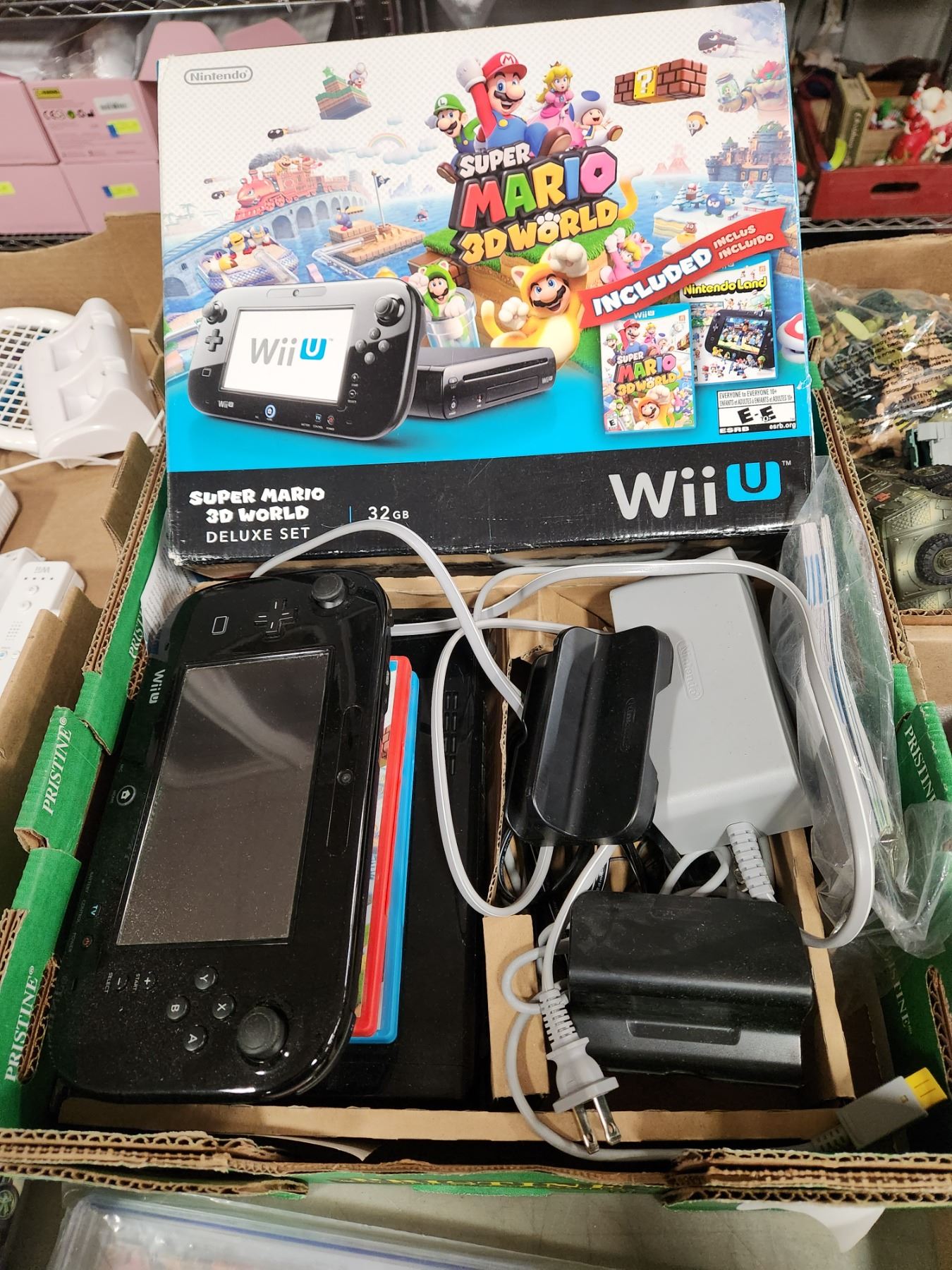 WORLD DELUXE SET INCLUDES 32 GB WII-U CONSOLE WITH WII-U GAME PAD, CORDS AND CONNECTORS PLUS 2 GAMES - SUPER MARIO 3D WORLD AND NINTENDO LAND, INSTRUCTIONS AND ORIGINAL BOX **ALL ITEMS MUST BE REMOVED BY 5PM SATURDAY, DECEMBER 16TH 2023. ALL REMAINING ITEMS WILL BE SUBJECT TO A $6.00 PER DAY STORAGE CHARGE. ANY ITEMS REMAINING AFTER TUESDAY, JANUARY 2ND 2023 WILL BE CONSIDERED FORFEITED. NO REFUNDS WILL BE ISSUED FOR FORFEITED ITEMS. TO SCHEDULE A PICK UP APPOINTMENT CLICK HERE