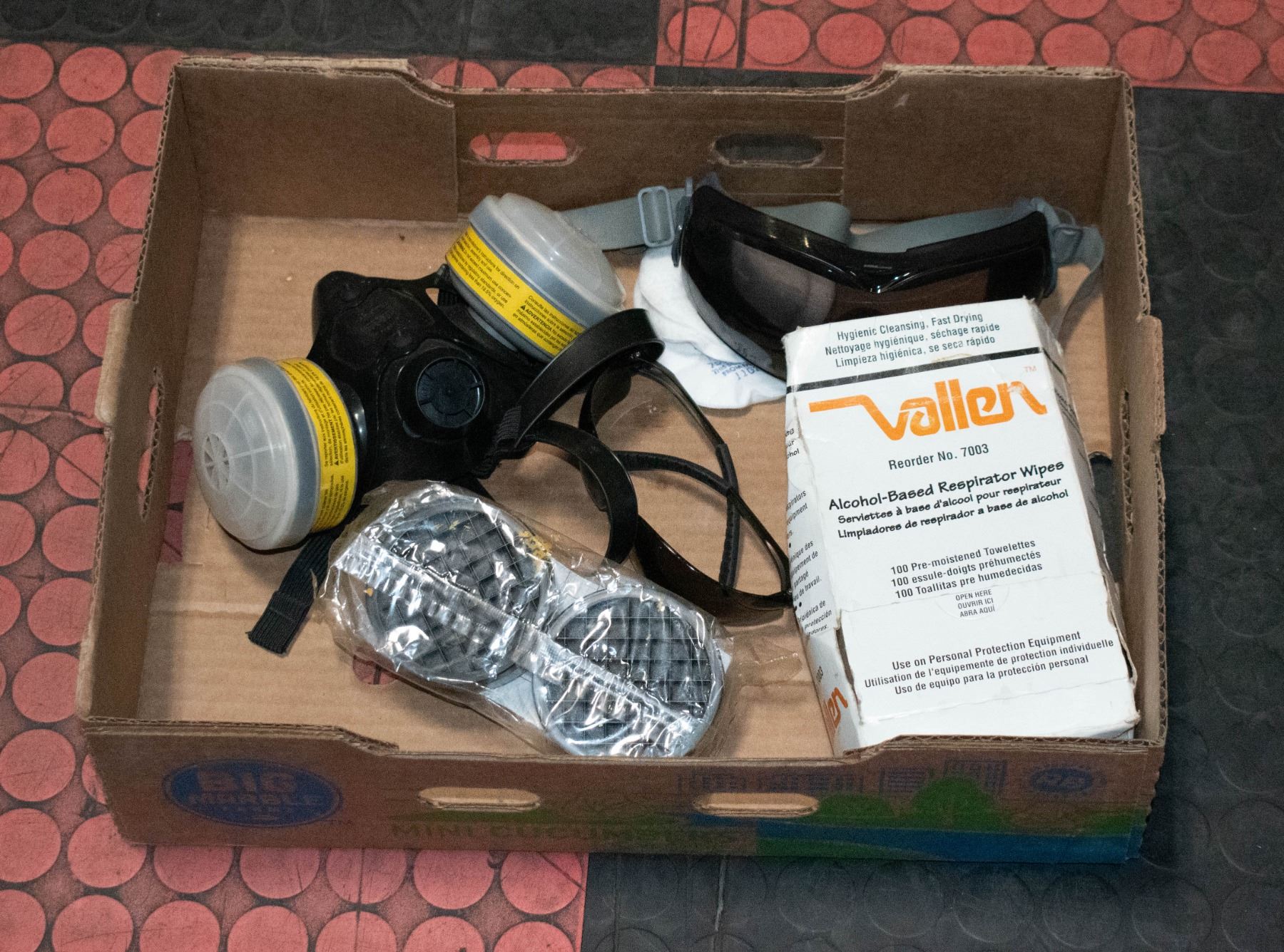 RESPIRATOR WITH NEW FILTERS, BOX OF ALCOHOL-BASED RESPIRATOR WIPES, TINTED SAFETY GOGGLES AND SAFETY GLASSES **ALL ITEMS MUST BE REMOVED BY 5PM SATURDAY, MAY 10TH 2025. ALL REMAINING ITEMS WILL BE SUBJECT TO A $6.00 PER DAY STORAGE CHARGE. ANY ITEMS REMAINING AFTER MONDAY, MAY 26TH 2025 WILL BE CONSIDERED FORFEITED. NO REFUNDS WILL BE ISSUED FOR FORFEITED ITEMS. TO SCHEDULE A PICK UP APPOINTMENT CLICK HERE