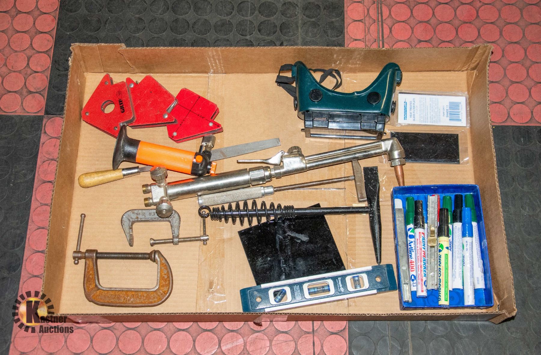WELDERS SAFETY GLASSES WITH NEW LENSES, 3 GRIP CORNER MAGNETS, NEW METAL MARKING PENS, NEW CHIPPING HAMMERS, STEEL C-CLAMPS, LEVEL, FILE, ETC. **ALL ITEMS MUST BE REMOVED BY 5PM SATURDAY, FEBRUARY 17TH 2024. ALL REMAINING ITEMS WILL BE SUBJECT TO A $6.00 PER DAY STORAGE CHARGE. ANY ITEMS REMAINING AFTER MONDAY, MARCH 4TH, 2023 WILL BE CONSIDERED FORFEITED. NO REFUNDS WILL BE ISSUED FOR FORFEITED ITEMS. TO SCHEDULE A PICK UP APPOINTMENT CLICK HERE