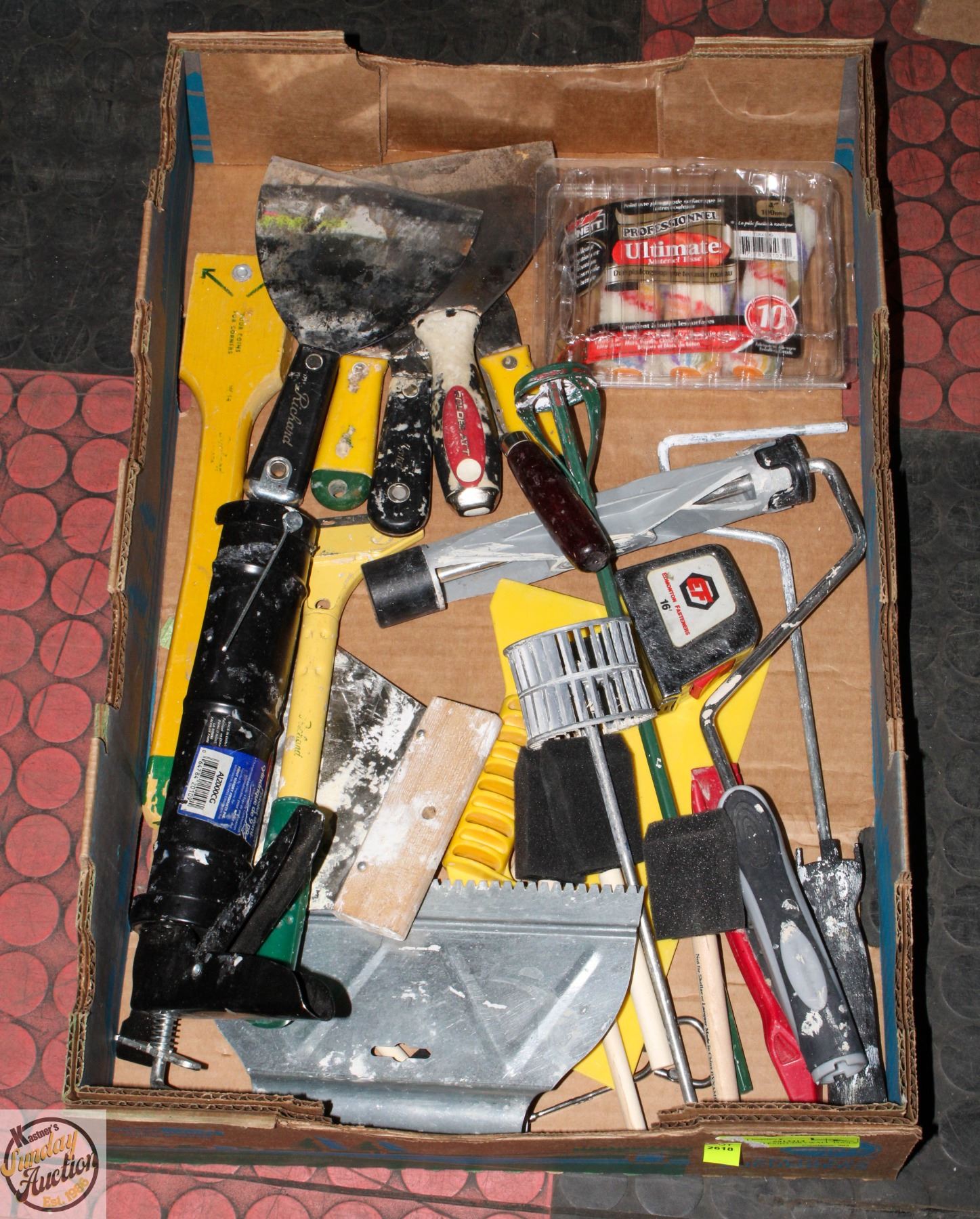 SCRAPERS, APPLICATORS, CAULKING GUN, NEW ROLLERS, TOOLS AND HARDWARE **ALL ITEMS MUST BE REMOVED BY 5PM SATURDAY, MAY 17TH 2025. ALL REMAINING ITEMS WILL BE SUBJECT TO A $6.00 PER DAY STORAGE CHARGE. ANY ITEMS REMAINING AFTER MONDAY, JUNE 2ND 2025 WILL BE CONSIDERED FORFEITED. NO REFUNDS WILL BE ISSUED FOR FORFEITED ITEMS. TO SCHEDULE A PICK UP APPOINTMENT CLICK HERE