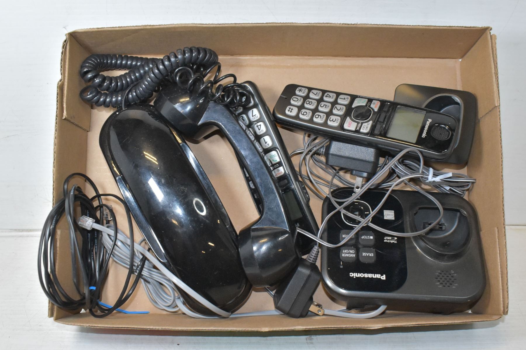 SET, VINTAGE BLACK PUSH BUTTON TELEPHONE, CELL PHONE HAND SET PLUG IN