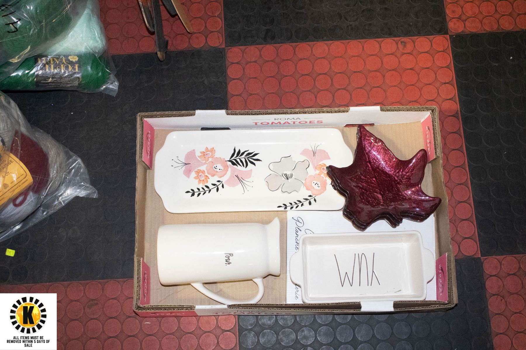 PITCHER AND LOAF PAN, CHARCUTERIE BOARD, HAND MADE CERAMIC PLATTER, COLLECTION OF 3 "LEAF" DISHES **ALL ITEMS MUST BE REMOVED BY 5PM SATURDAY, NOVEMBER 4TH 2023. ALL REMAINING ITEMS WILL BE SUBJECT TO A $6.00 PER DAY STORAGE CHARGE. ANY ITEMS REMAINING AFTER MONDAY, NOVEMBER 18TH, 2023 WILL BE CONSIDERED FORFEITED. NO REFUNDS WILL BE ISSUED FOR FORFEITED ITEMS. TO SCHEDULE A PICK UP APPOINTMENT CLICK HERE