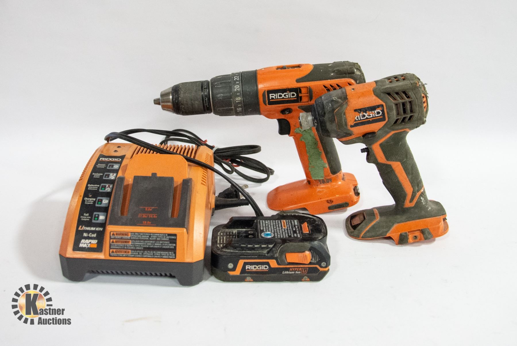 CHARGER INCL. 18 VOLT HYPER LITHIUM ION BATTERY, 18 VOLT 1/2"-MULTI-SPEED DRILL WITH QUICKCHACK, 18 VOLT NUT DRIVER, RIDGID RAPID MAX MULTI-CHARGER - NI-CAD AND LITHIUM ION COMPATIBLE, 9.6 VOLT, 12 VOLT, 14.4 VOLT AND 18 VOLT CHARGER WITH DIGITAL LI **ALL ITEMS MUST BE REMOVED BY 5PM SATURDAY, FEBRUARY 3RD 2024. ALL REMAINING ITEMS WILL BE SUBJECT TO A $6.00 PER DAY STORAGE CHARGE. ANY ITEMS REMAINING AFTER MONDAY, FEBRUARY 19TH, 2023 WILL BE CONSIDERED FORFEITED. NO REFUNDS WILL BE ISSUED FOR FORFEITED ITEMS. TO SCHEDULE A PICK UP APPOINTMENT CLICK HERE