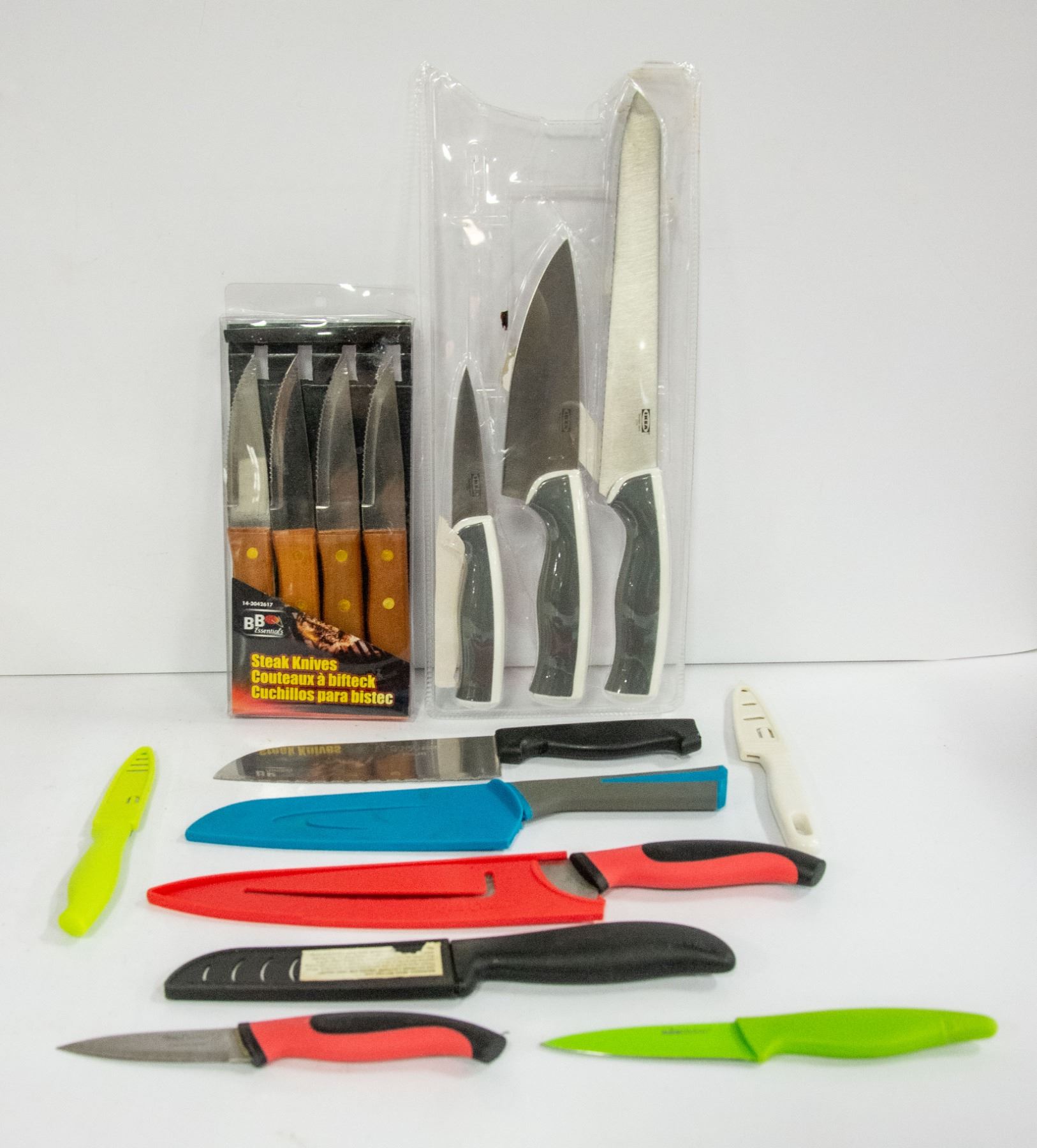 FLAT WITH SET OF 4 NEW STEAK KNIVES, 3-PC NEW