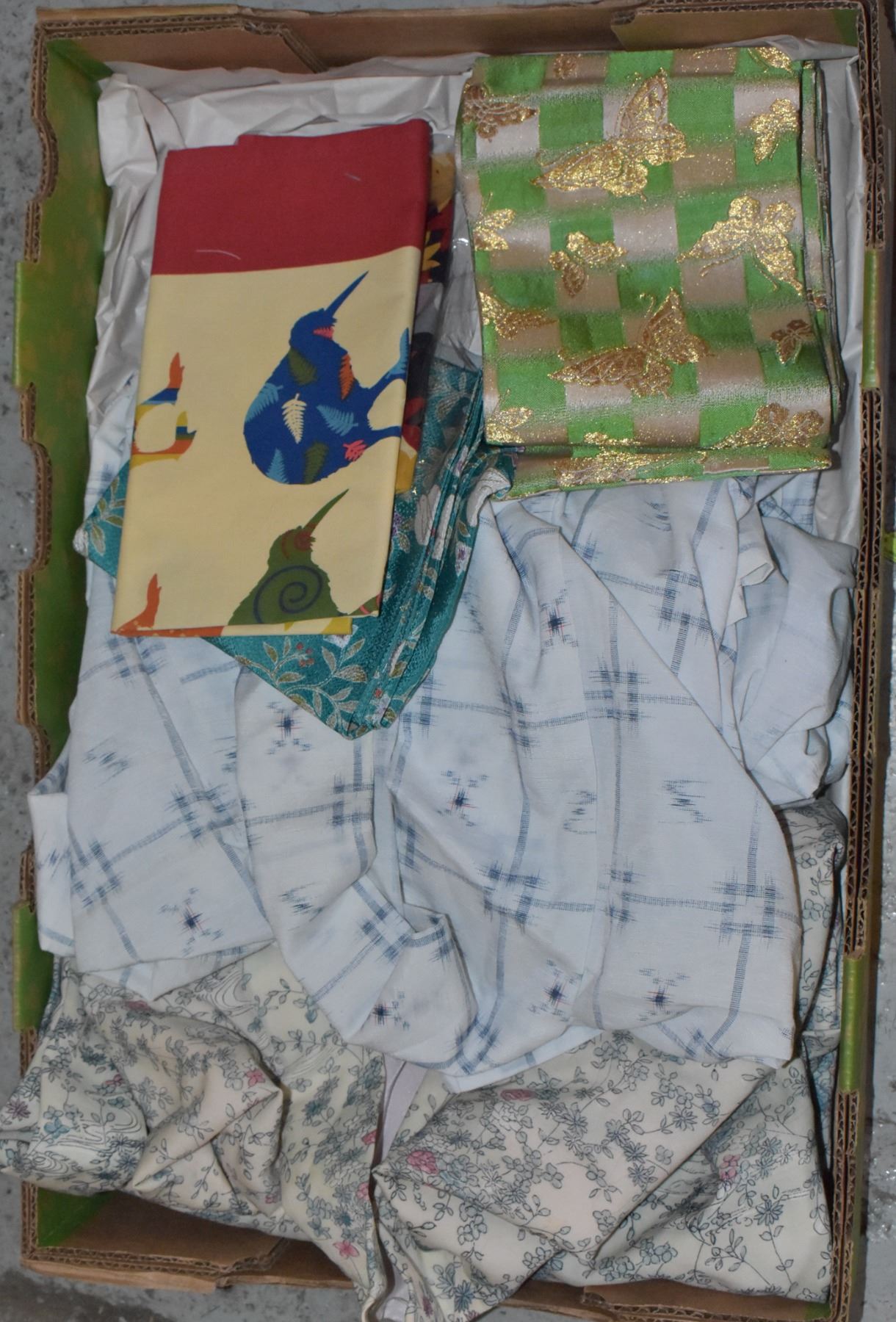 KIMONOS - MENS FULL LENGTH X/XL AND LADIES SIZE M, LONG DECORATIVE SILK SASH, NEW LINEN WALL HANG DECOR