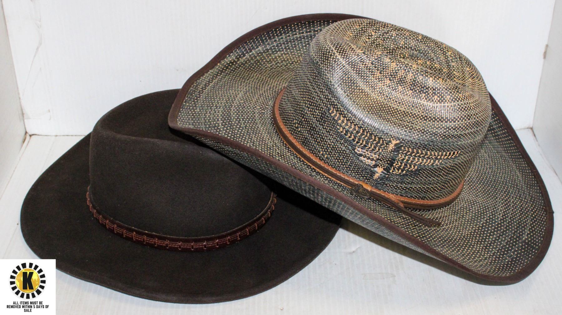 RAIL BUCKHORN, FENIX BOUND EDGE STRAW COWBOY HAT - SIZE 7 1/2 AND BAILEY FIREHOLE LITE FELT (BROWN) COWBOY HAT - SIZE XL