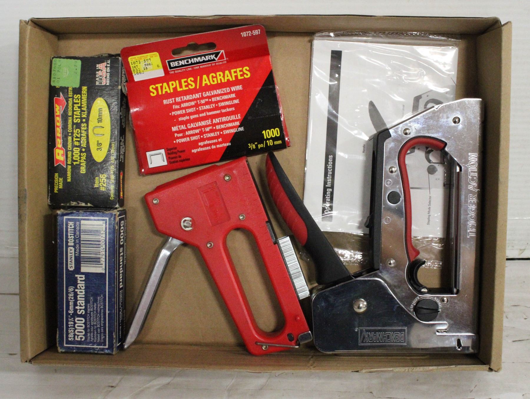 STAPLES INCL. BENCHMARK TRIGGER ACTION T50 ADJUSTABLE DRIVE PROFESSIONAL CONTRACTORS STAPLER WITH INSTRUCTIONS, LIGHTWEIGHT CRAFTING STAPLER - INCLUDES 1,000'S OF STAPLES **ALL ITEMS MUST BE REMOVED BY 5PM SATURDAY, SEPTEMBER 2ND 2024. ALL REMAINING ITEMS WILL BE SUBJECT TO A $6.00 PER DAY STORAGE CHARGE. ANY ITEMS REMAINING AFTER MONDAY, NOVEMBER 18TH 2024 WILL BE CONSIDERED FORFEITED. NO REFUNDS WILL BE ISSUED FOR FORFEITED ITEMS. TO SCHEDULE A PICK UP APPOINTMENT CLICK HERE