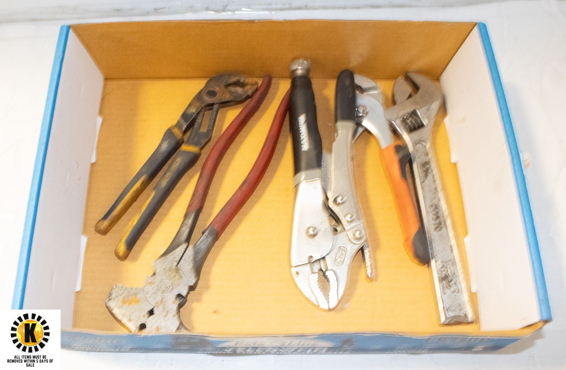 FLAT WITH VICE GRIP, CHANNEL LOCKS, CRECENT