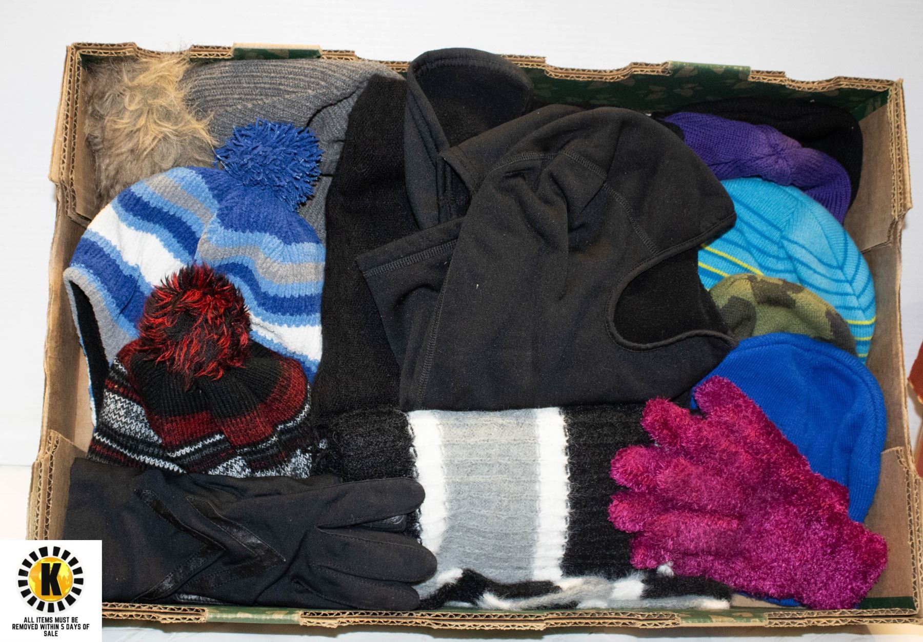 (X2), TOQUES (X5) - SOME KIDS: SPIDERMAN, PAW PATROL, TEAM MCQUEEN, HATS (X3) BAKALAVAS (X2), GLOVES (X2)