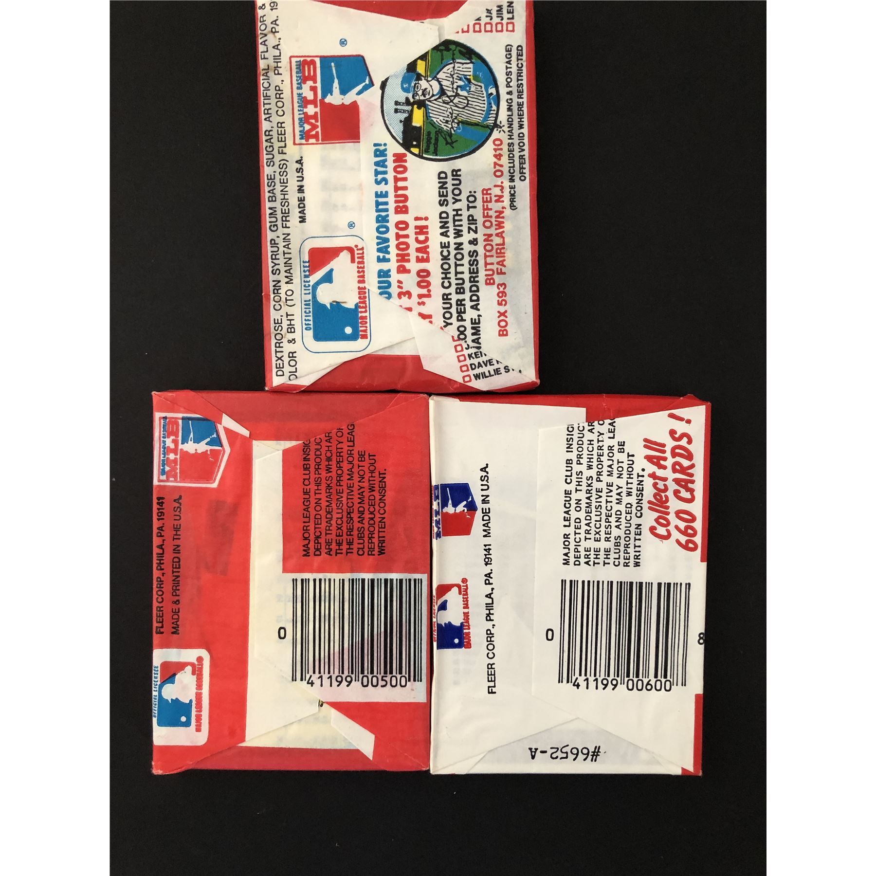 The first three years of Fleer baseball; 1981, 1982 & 1983. 1 pack of each. Inaugural issue in 1981 featured rookie cards of Fernando Valenzuela, Rickey Henderson, Kirk Gibson and so many others. 1982 - Ripken & Lee Smith. 1983 - Gwynn, Sandberg & Boggs!