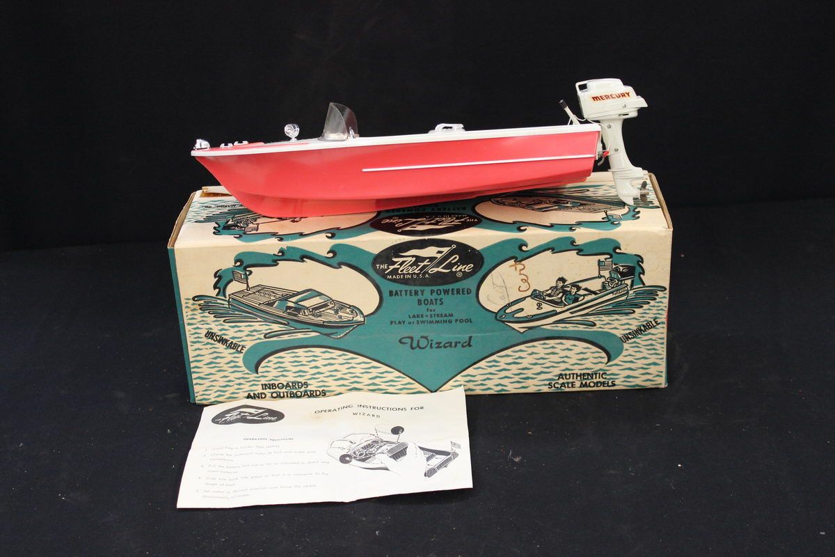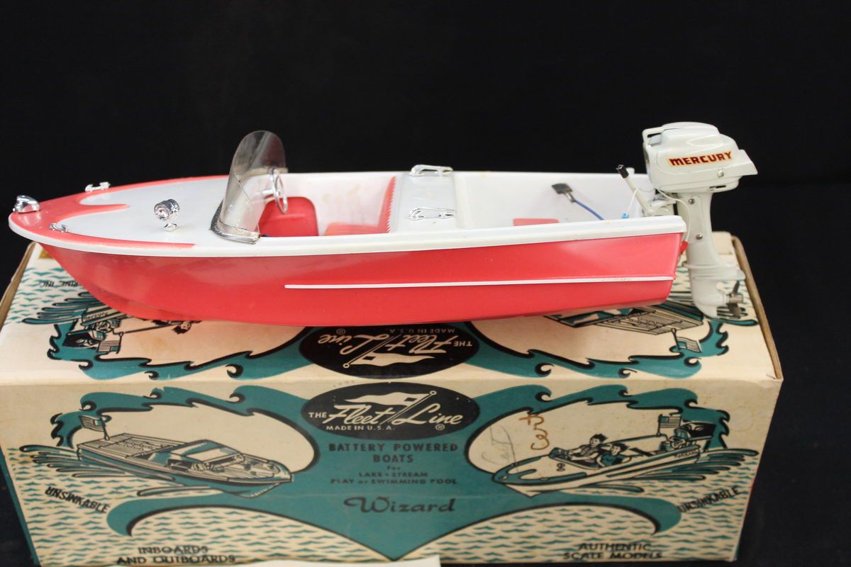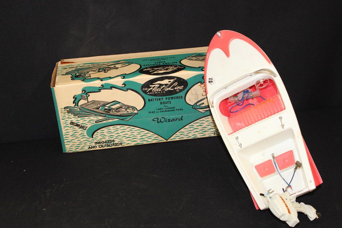 FLEET LINE BATTERY BOAT - W/ ORIG. BOX & MOTOR - 14"