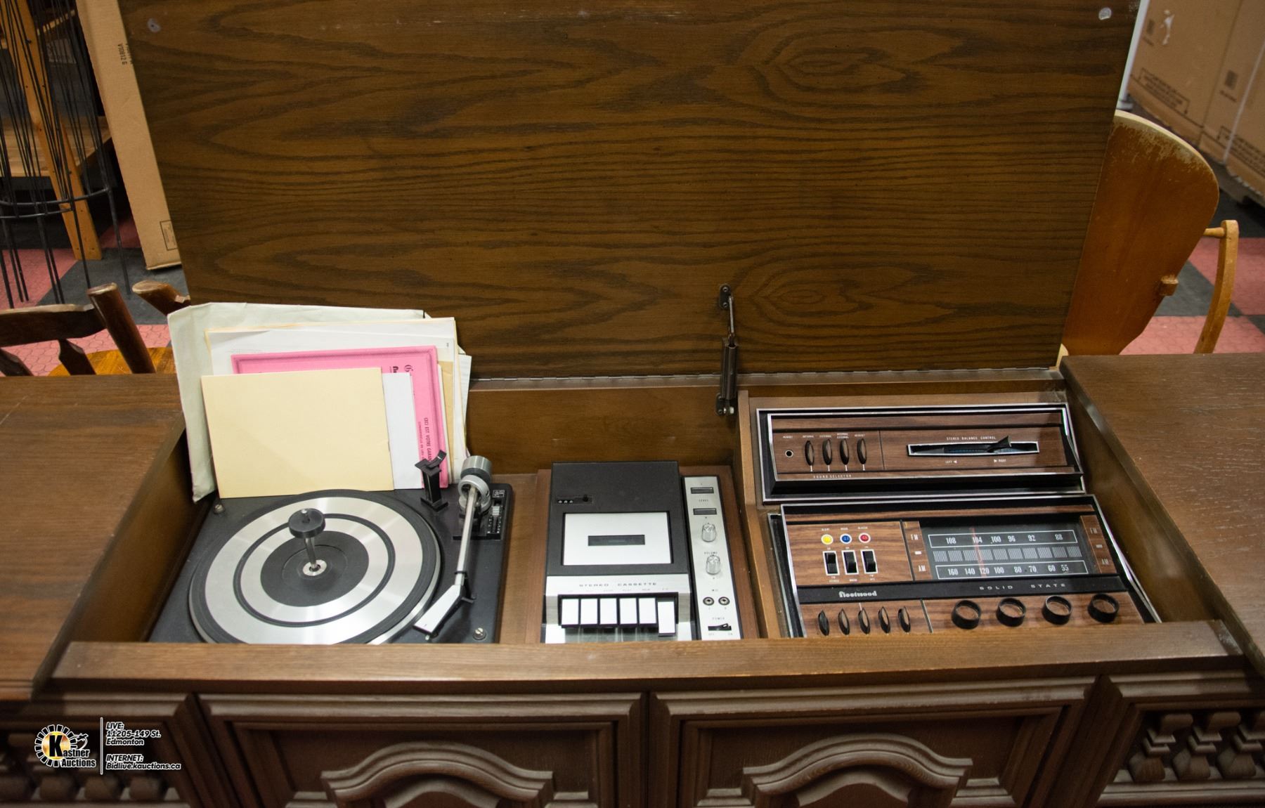 CASSETTE, 33-78 RPM RECORD PLAYER. 66" X 18.5" X 29"