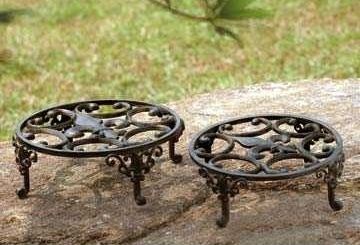 FLEUR DE LIS PLANT STANDS - SET OF TWO - 4.5"H 12"D X 12"D - ALUMINUM & IRON PLANT STANDS - SET OF TWO
