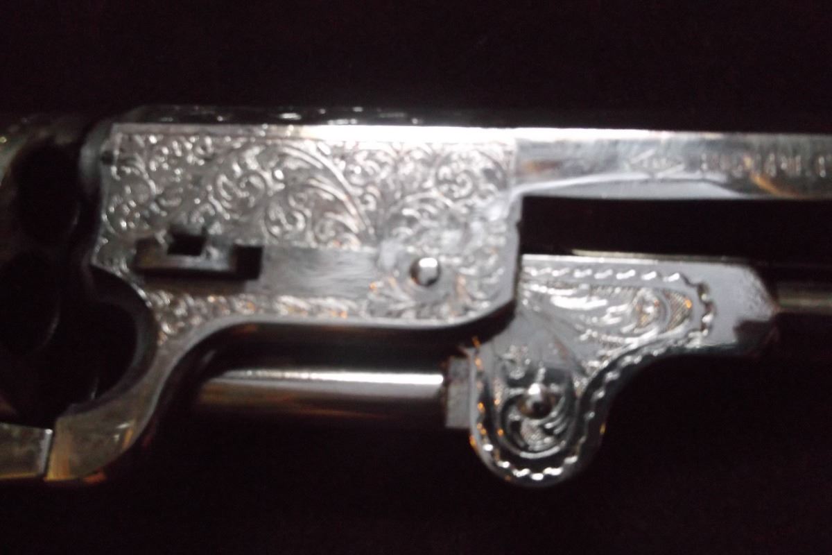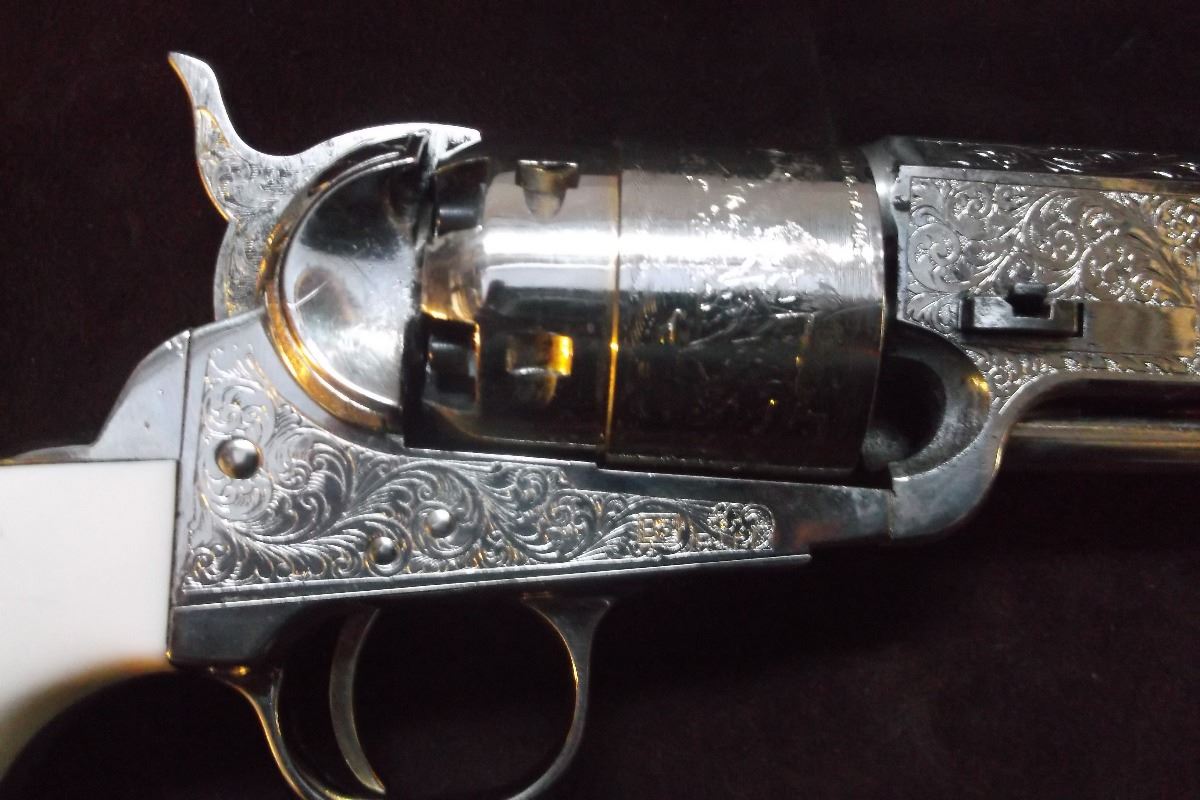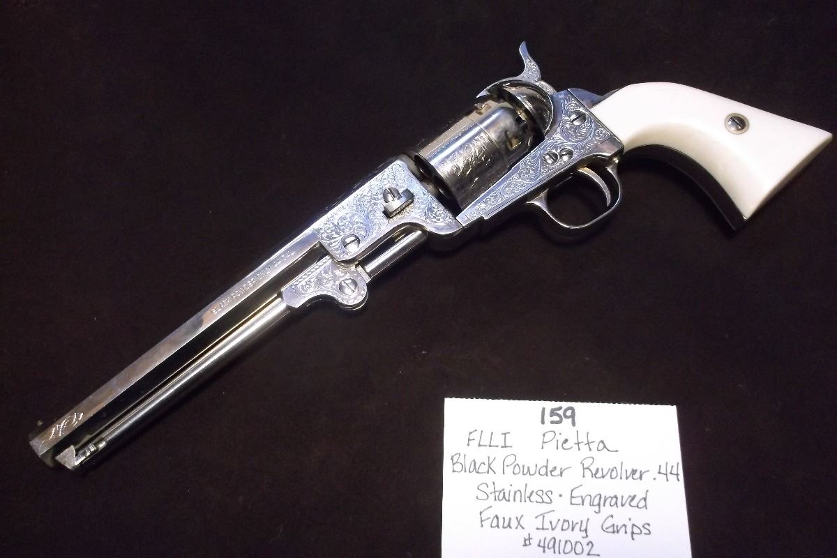 FLLI Pietta Black Powder Revolver- .44- Stainless- Engraved- Faux Ivory Grips- #491002