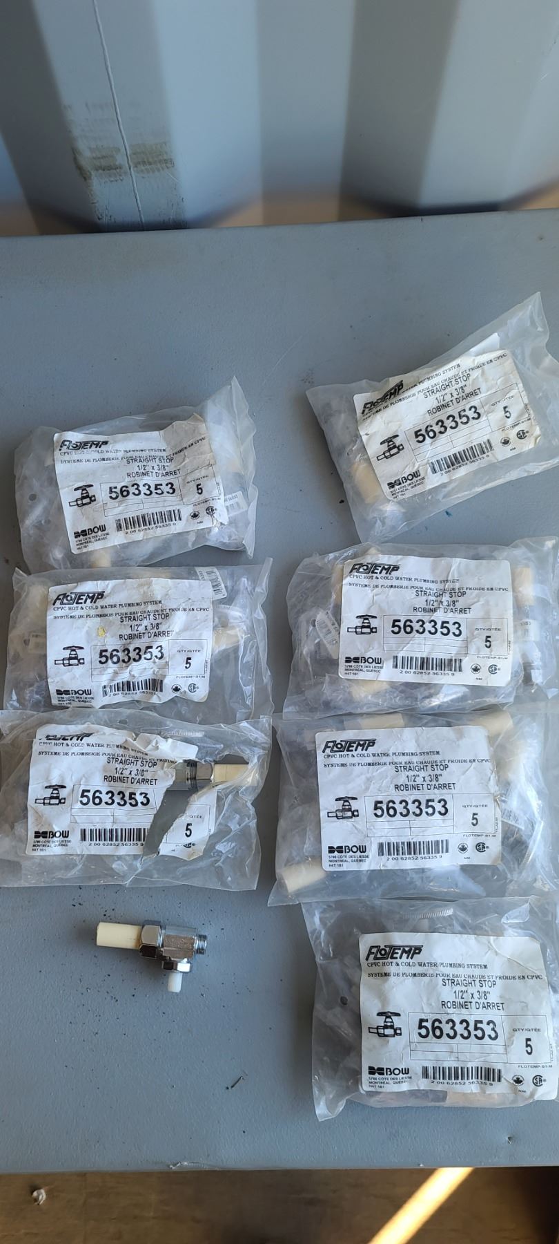 FLO TEMP CPVC HOT AND COLD WATER PUMPING SYSTEM - STRAIGHT TOP 1/2" X 3/8" QTY X 7 BAGS OF 5 PART # 563353