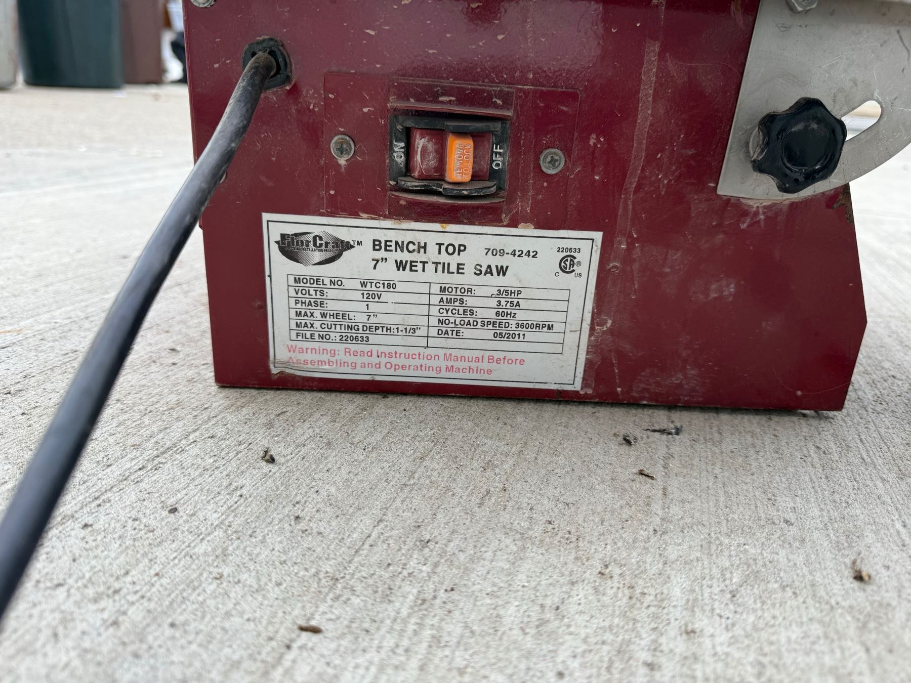 FLOR-CRAFT BENCH TOP 7-IN WET TILE SAW - WORKS!