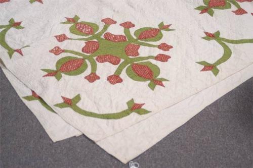 FLORAL PINK AND GREEN APPLIQUE QUILT