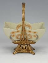HAND PAINTED FLORAL DESIGN - BRASS BASE AND HANDLE - 8.5LX6.5WX10.5H