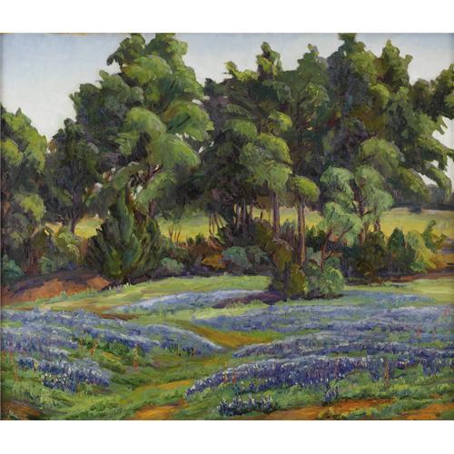 <B>FLORENCE MCCLUNG (1894-1992)</B></I><BR>Untitled, 1930s<BR>Oil on canvas<BR>20in. x 24in.<BR>Signed lower left<BR><BR>This regionalist treatment of bluebonnets by Florence McClung is untitled, but we can narrow the locale by the tall flower growing among the bluebonnets, the orange-red "Skyrocket" flower, which grows in East Texas.<BR><BR>Provenance:<BR>Dallas Auction Gallery<BR><BR><BR><BR><b>Shipping:</b> Requires 3rd Party Shipping (<a target="_blank" href="http://www.heritageauctions.com/common/shipping.php">view shipping information</a>)