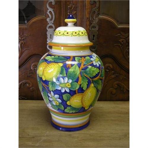 BEAUTIFUL FLORENTINE MAJOLICA MONTELUPO GINGER JAR, SET OF TWO. POMAGRANATE LEMONS & FLOWERS DECORATION, FOR A TOUCH OF COLOR IN YOUR HOME!<p>H. 18" D.10"<p>MADE IN YEAR 1960<p>THE JARS ARE IN PERFECT CONDITION.<p>ITEM COUD BE RETURNED IF IMPERFECTION ARE PRESENT FOR A FULL REFOUND.<p>I WOULD LIKE INTRODUCE MYSELF, I AM TIZIANA BASETTI, I CAME FROM MILAN ITALY TO FLORIDA A FEW YEARS AGO. MY HUSBAND DIEGO AND I HAVE AN EXTENSIVE WORKING HISTORY IN ANTIQUES. WE OPENED A SUCCESFUL SHOP "OLD WORLD ANTIQUES" ELEVEN YEARS AGO, WE REPRESENT RENOUND ARTISAN AS WELL AS DILL IN QUALITY ANTIQUE FURNITURE. I'M NOW EXPANDING MY BUSINESS TO INCLUDE THE INTERNET BY OFFERING A LARGE INVENTORY OF UNIQUE AND ONE OF A KIND ITEMS FROM MY NATIVE ITALY; SUCH AS MAJIOLICA, SILVER,FURNITURE, MURANO GLASS, JEWLERY, COINS AND MANY OTHER ITEMS. IF YOU ARE LOOKING FOR ANY PARTICULAR ITALIAN OR EUROPEAN OBJECT, LET ME KNOW, I WILL DO MY BEST TO ACCOMPLICE YOU! I REALIZE IT TAKES TIME FOR US TO BUILD A TRUSTING PROFESSIONAL WORKING RELETIONSHIP. MY GOAL IS TO PROVIDE YOU WITH A TOP QUALITY ITEMS FOR YOUR HOMES, COLLECTION, OR CLIENTS, AS WELL AS, SHARE MY KNOWLEDGE OF ITALIAN ITEMS WITH YOU. PLEASE DO NOT HESITATE TO CONTACT ME WITH ANY OF YOUR QUESTIONS, CONCERNS,OR NEEDS.<p>THANK YOU FOR YOUR TIME OR CONSIDERATION, & OLSO FOR TELLING YOUR FRIENDS AND ASSOCIATES ABOUT THE SERVICES I PROVIDE.