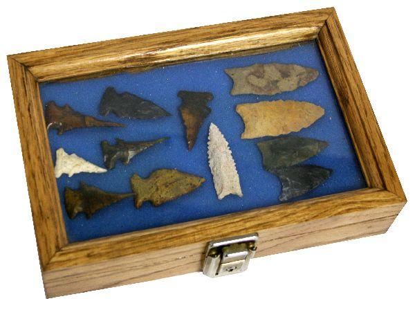 6x6 inch frame with (7) Bolen beveled points (6 were submerged finds), a field found Tallahassee point, and a group of (4) Paleo blades ranging in size from 3 to just under 2 inches.