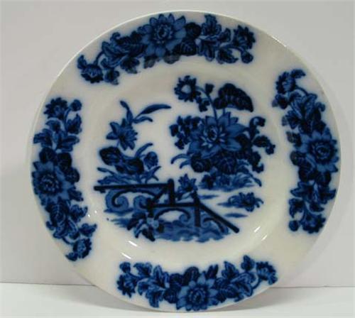 FLOW BLUE PLATE. G.L. Ashworth & Bros (1862-1890). Floral decorated. Shows crazing. Marked on reverse. 10.5” Dia.