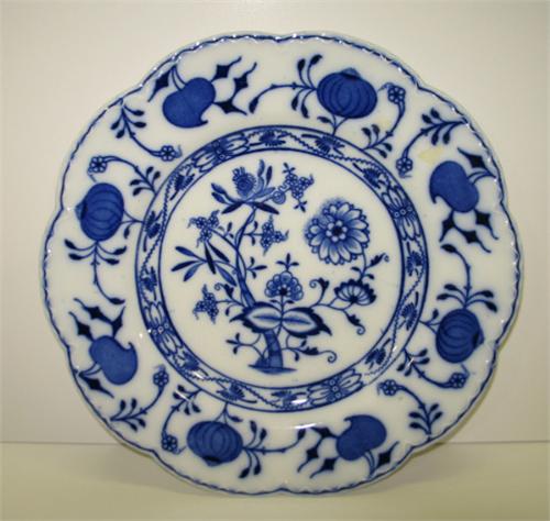 FLOW BLUE PLATE. Johnson Bros. (1900+). Floral decorated. Marked on reverse "Holland". 10" Dia.