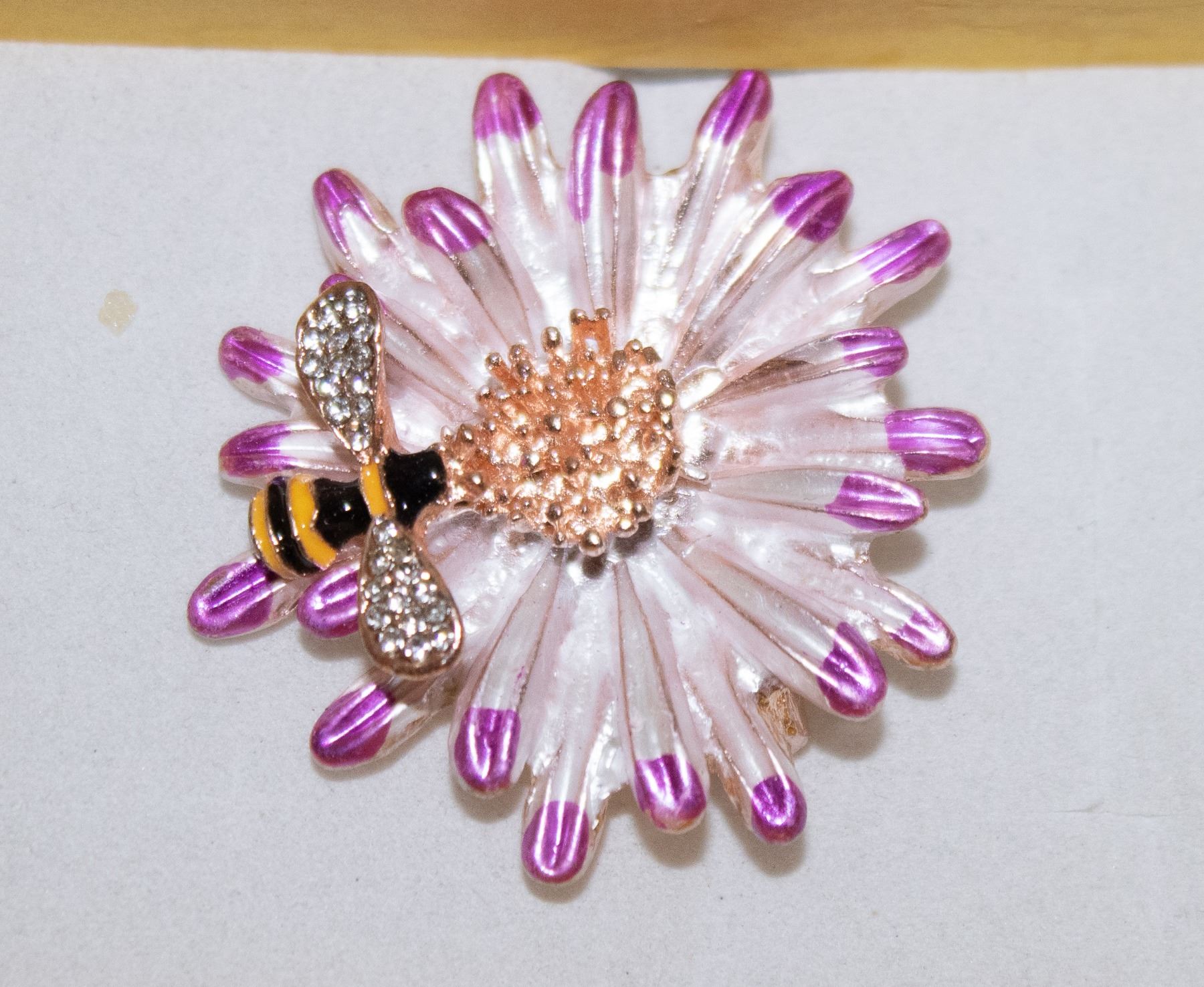 FLOWER BROOCH WITH BEE ACCENT