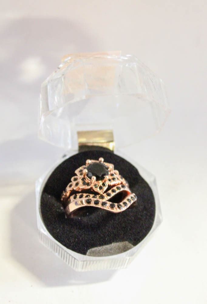 BRIDAL STYLE BLACK ZIRCONIA ACCENTS RING SET - SZ8