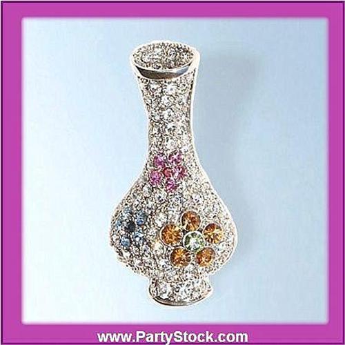 FLOWER VASE PIN BROOCH 24K GOLD SWAROVSKI CRYSTAL