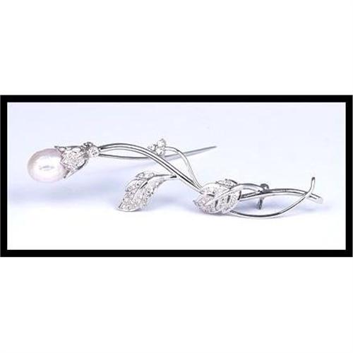 <tr><td>Title:FLOWERY 18K WHITE GOLD PEARL BROOCH</td></tr>