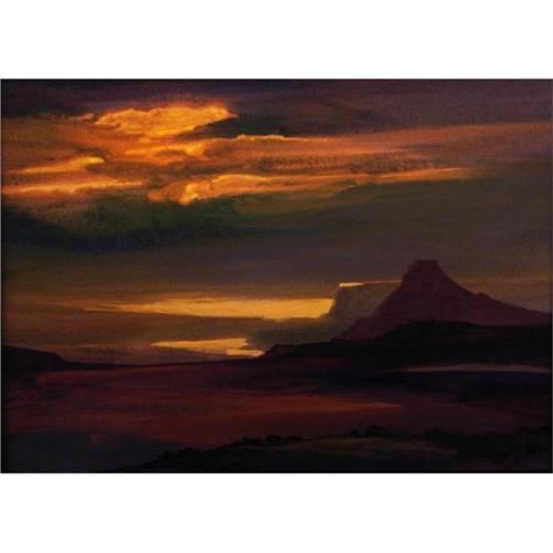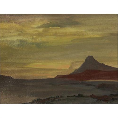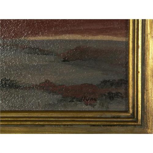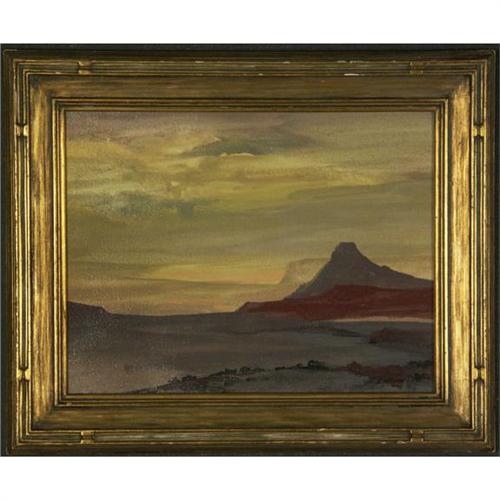 ACRYLIC AND FLORESCENT ACRYLIC ON CANVAS 10'' x 13'', John Plumer Ludlum (1906-1993), NY/CA. A Desert Landscape. Signed lower right. Painting is florescent (as seen under black light). Placed in a period carved wood goldtone frame.