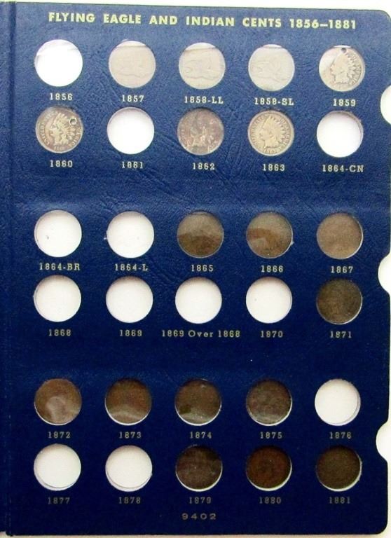 1857, 1858 L.L., 1858 S.L., 1859 & 1860 INDIANS HOLED, 1862 & 1863, 1865 - 1867, 1871-1875, 1879-1908 & 1909 (46 TOTAL) MOSTLY CIRC, FEW VF