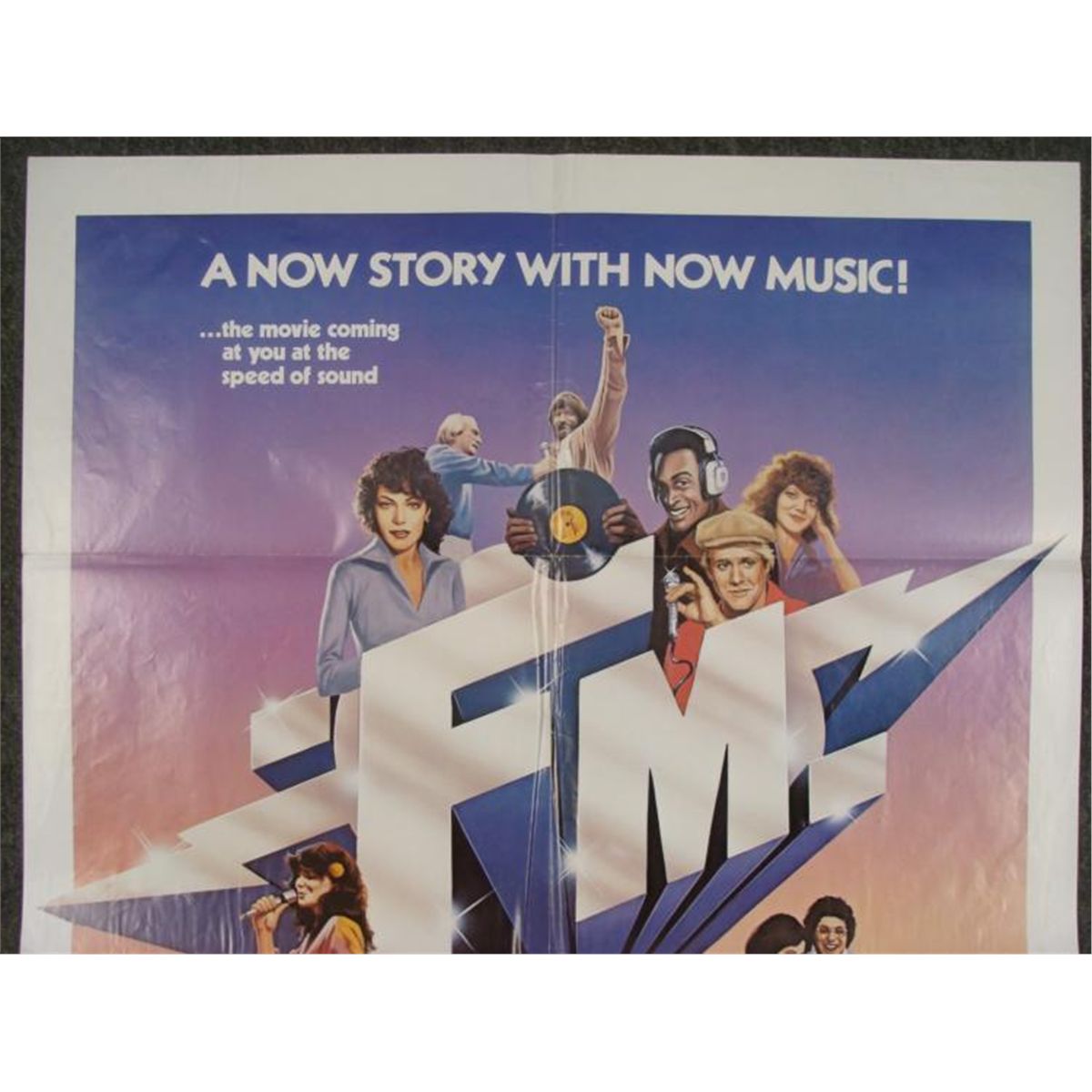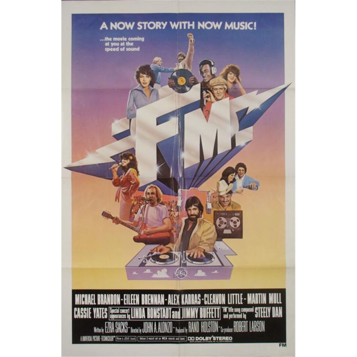 Here is an original poster from the 1974 movie FM. The film, about a Los Angeles radio station, highlights its logo and its great DJ's in this terrific poster. Size: 27 x 41 inches (one sheet) Condition: Very good; light wear at the folds, and surface wrinkles