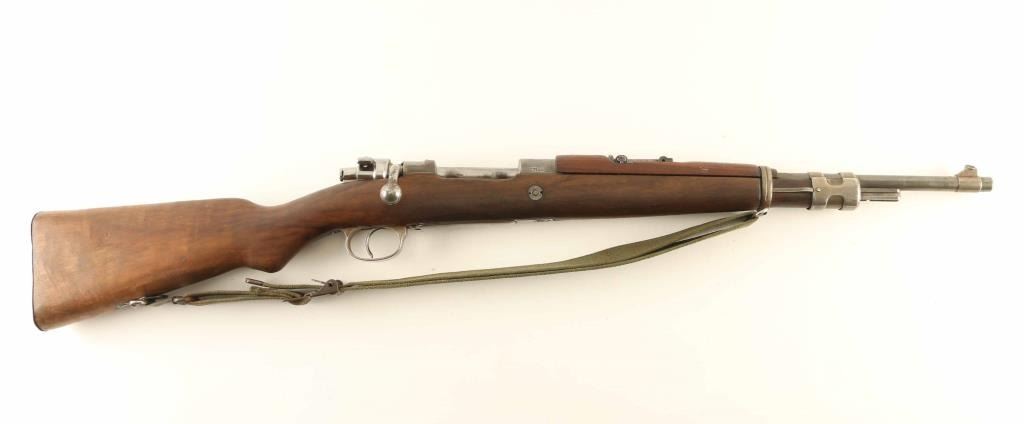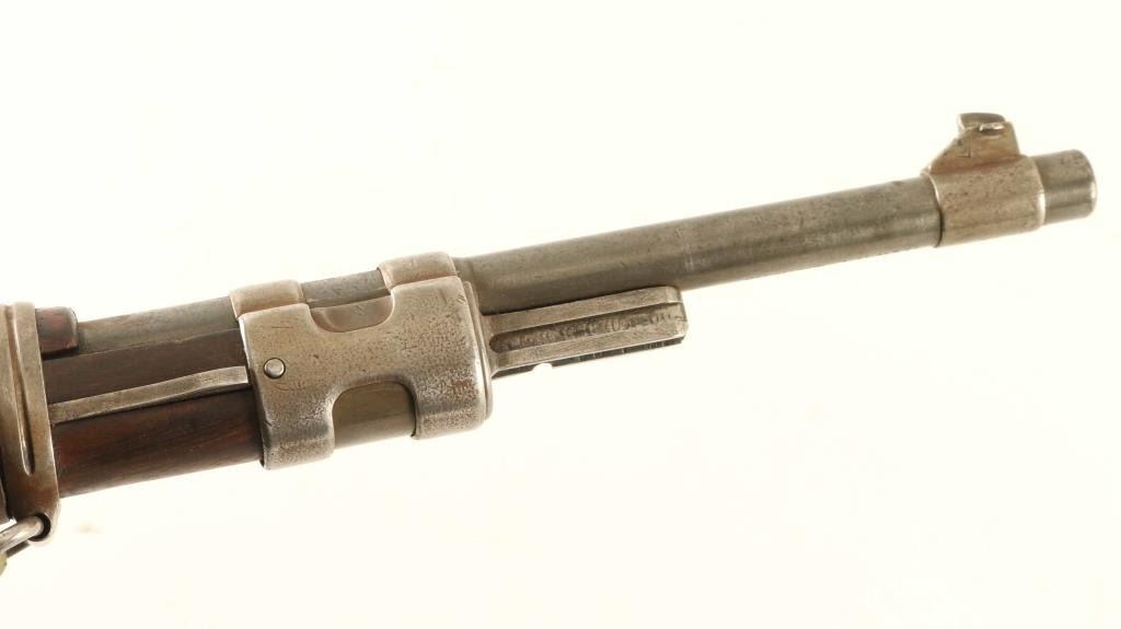 Belgian bolt action military rifle manufactures for use by the Colombian government, imported by CAI St Albans VT. Features 17.5" barrel, blade front & tangent rear sights, provision for cleaning rod (no rod present), sling swivels, manual safety. Bore is poor to fair condition, dark & pitted with fairly strong rifling. Metal surfaces are almost entirely polished in the white, with some remaining thin bluing on receiver, new patina forming on bolt handle, light pitting observed in many places. Stock is good serviceable condition, sanded, fair fit to metal with metal showing proud of wood at butt, tang, bottom metal. Magazine follower beveled at rear to allow bolt to close on empty magazine. Marked "30" on receiver bridge. Includes good condition US type cotton web sling. Condition is NRA Fair++ *** C&R Firearm ***