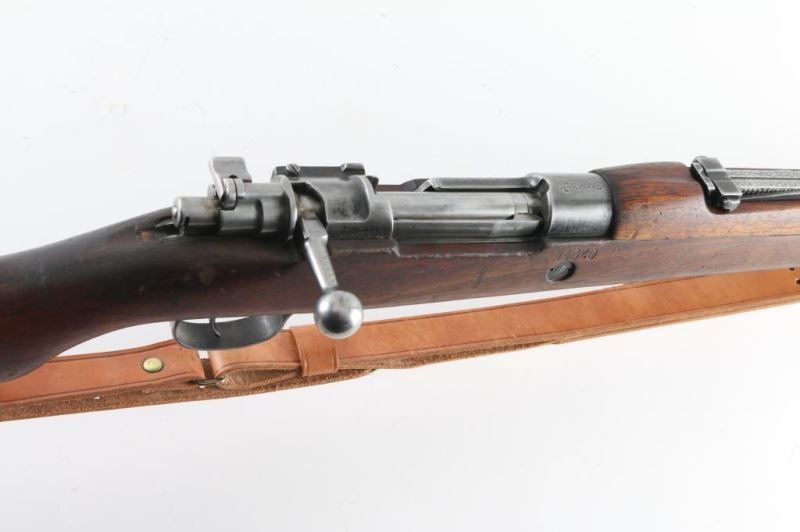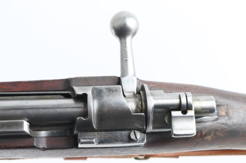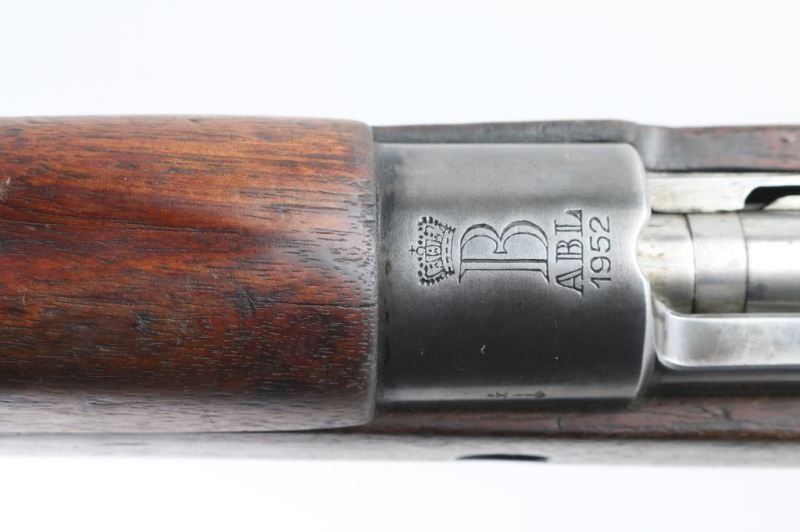 Rifle. Bolt-Action. 5-rd internal box magazine. Made mainly for export, but also used by the Belgium military. FN made these only for two, or three years before going to the FN49. This one manufactured in 1952. 23" barrel with checkered ramp, triangle blade front, and tangent rear sights. "Fab. Nat. D'Armes de Guerre, Herstal-Belgique", in two lines on receiver side plate. Receiver ring stamped large "B" with crown. ( king Baudouin) "ABL, 1952". Right receiver stamped with serial number, with matching number stamped in the stock below it. Mismatched bolt. Some Belgium proofs stamped on small parts. Bore appears excellent/bright. Action is crisp/tight. Gray/black enamel finish is mostly in the white, with traces remaining, about 10%. Wood/handguard are good with the usual minor scratches/dings. Serrated steel buttplate. No import marks. Newer incorrect two claw leather sling attached. NRA Condition-Good. C&R Firearm.