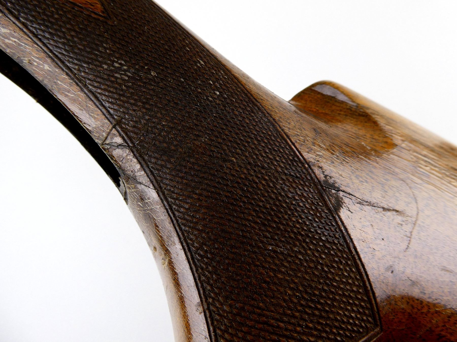 LOT INCLUDES; (2) WOODEN BUTT STOCKS, CHECKERED, PISTOL GRIP, BROWN RUBBER RECOIL PAD, ONE WITH LARGE CRACK ON WRIST, OAL APPROX. 13" & 13.25". MAY REQUIRE FITTING. SEE PHOTOS.