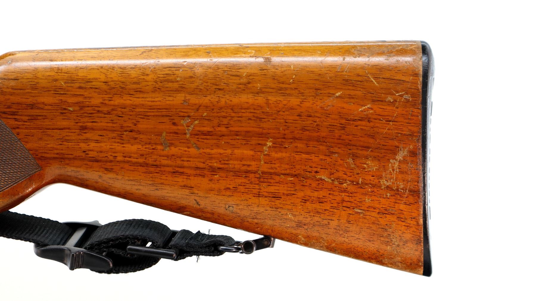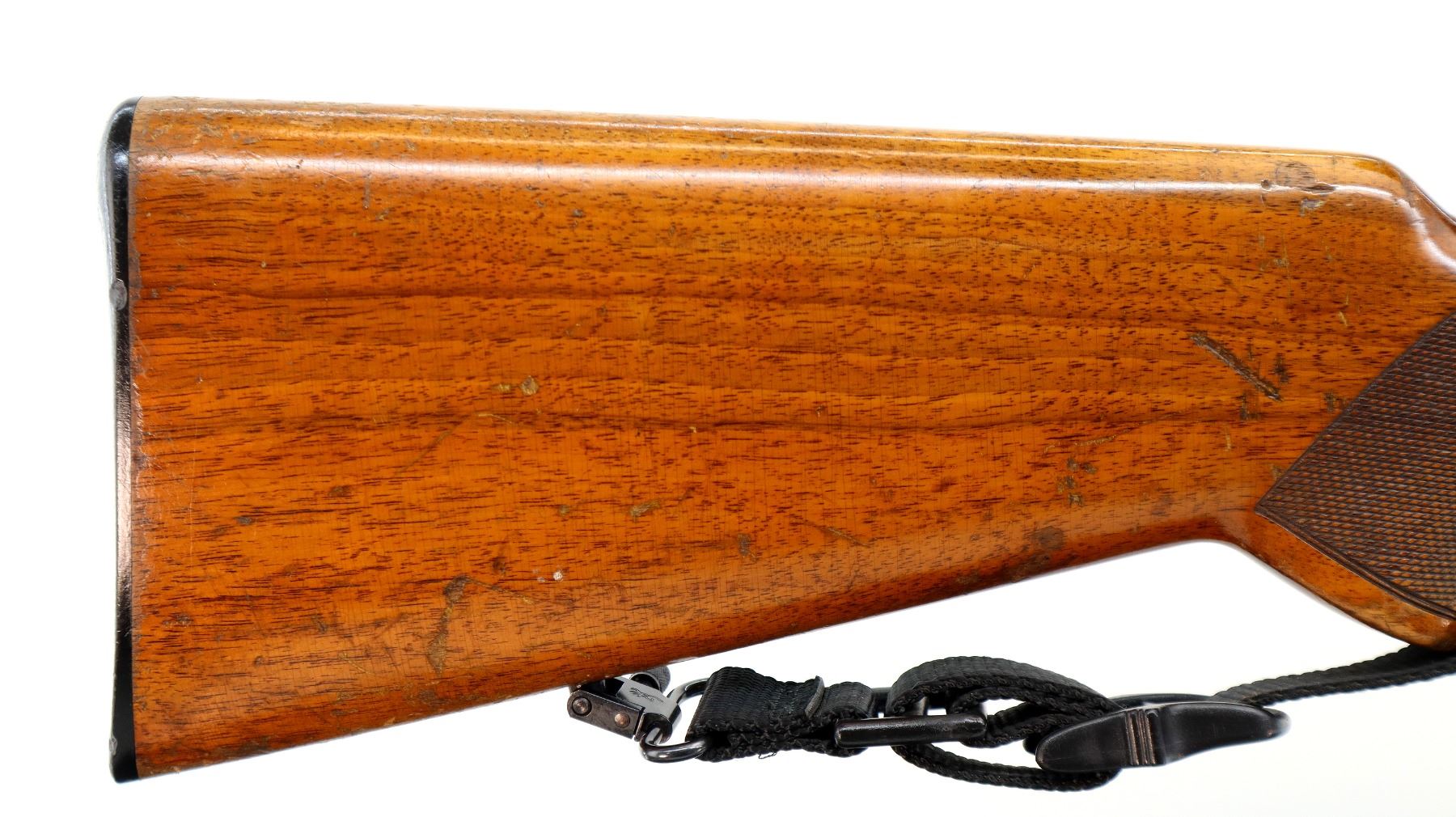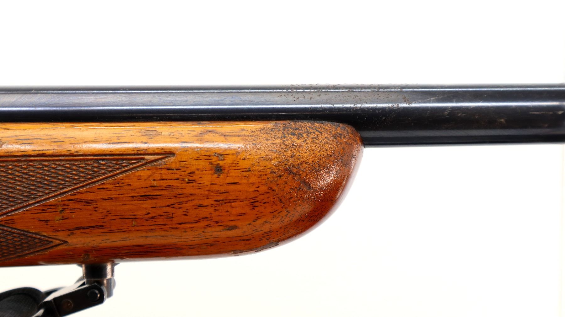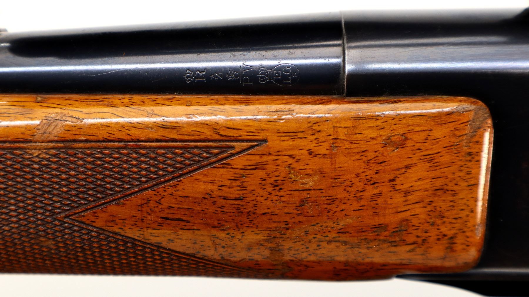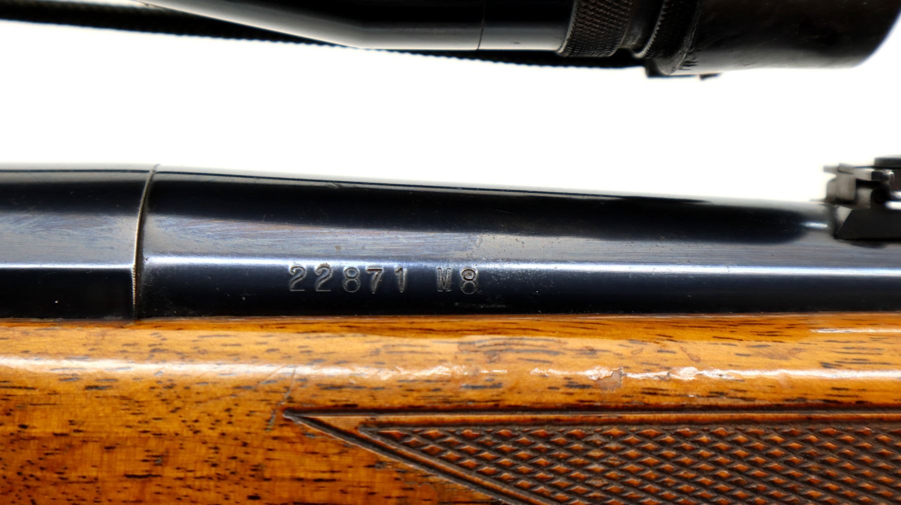 Main Description: Blade front sight with ramp, adjustable folding u notched rear sight, blued finish, engraved receiver drilled and tapped with Weaver V9-II W AO Scope installed, clear optics with duplex crosshair. Two piece wood stocks, checkered forearm and pistol grip, Browning logo black polymer butt plate, sling swivels with black nylon sling.