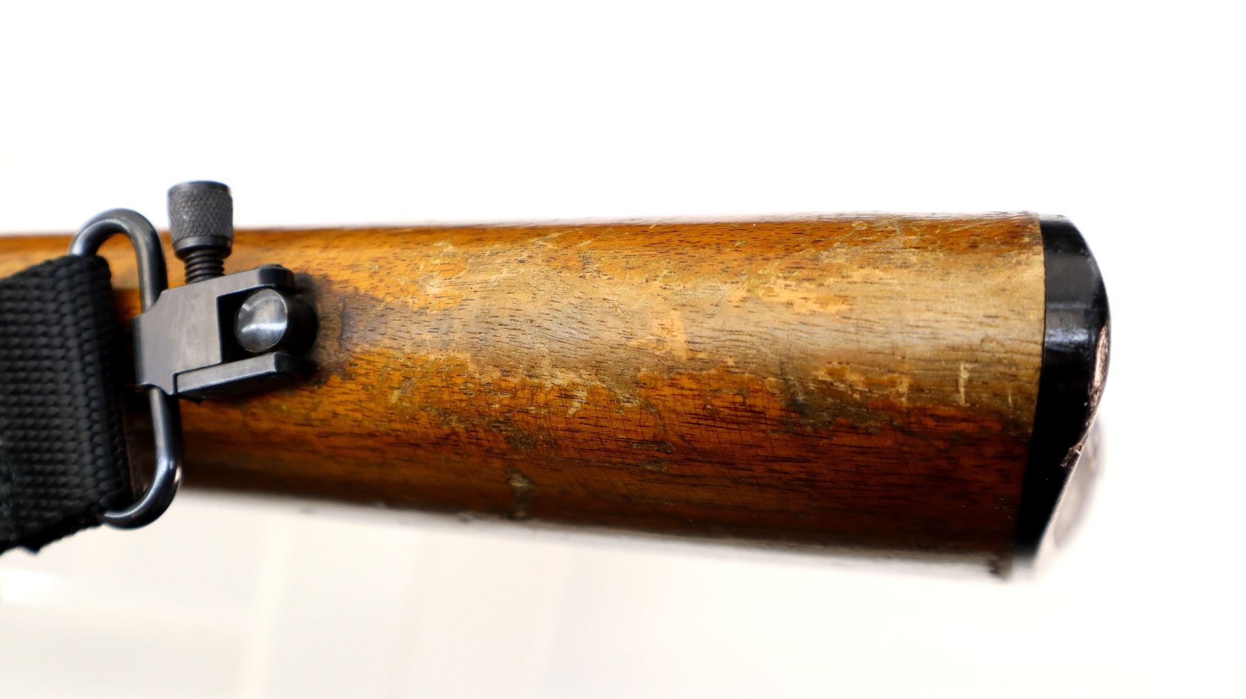 Wear: Metal finish shows some light rust speckles, scratches, handling marks and wear. Stocks show marks, scratches and wear.