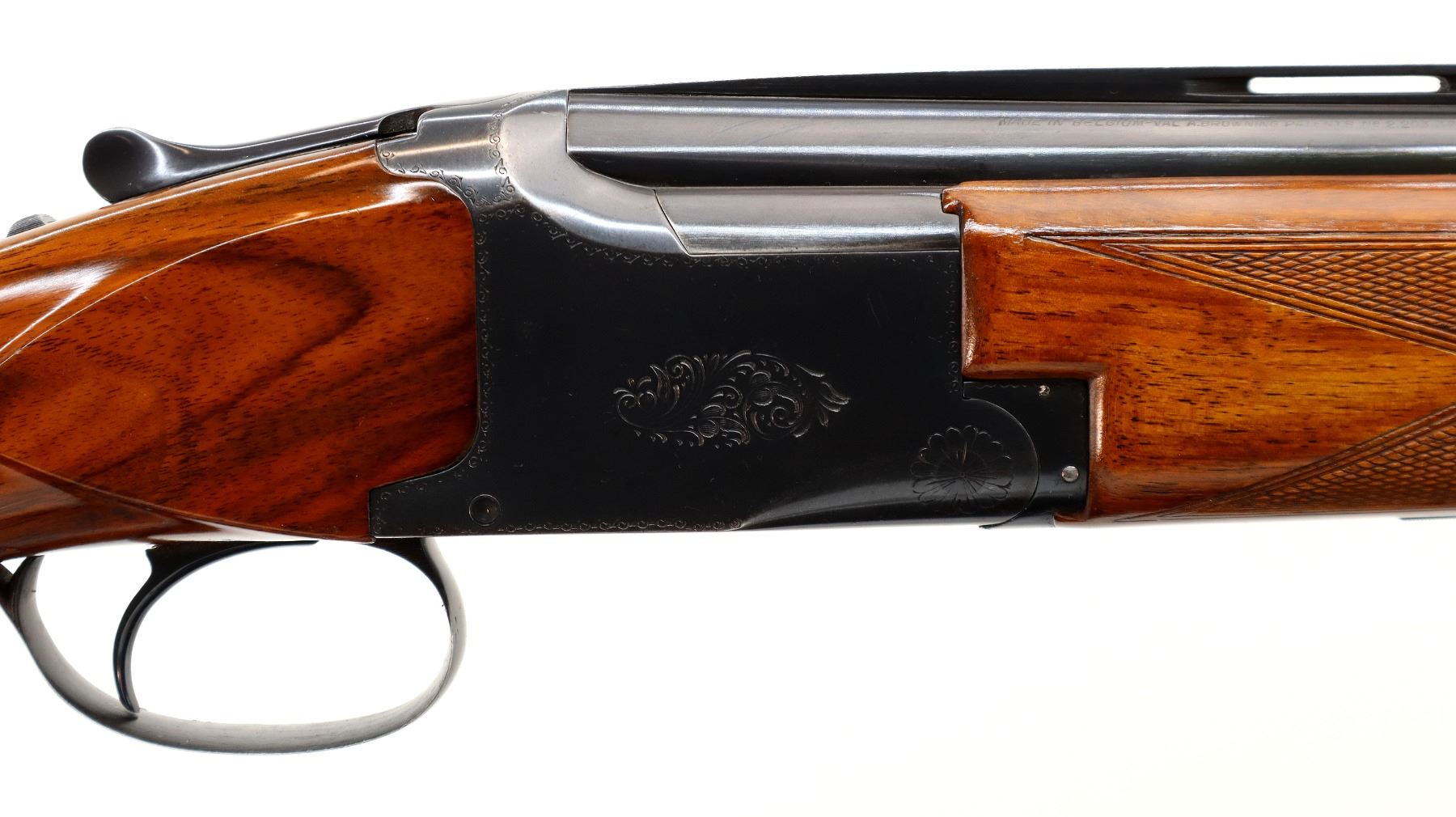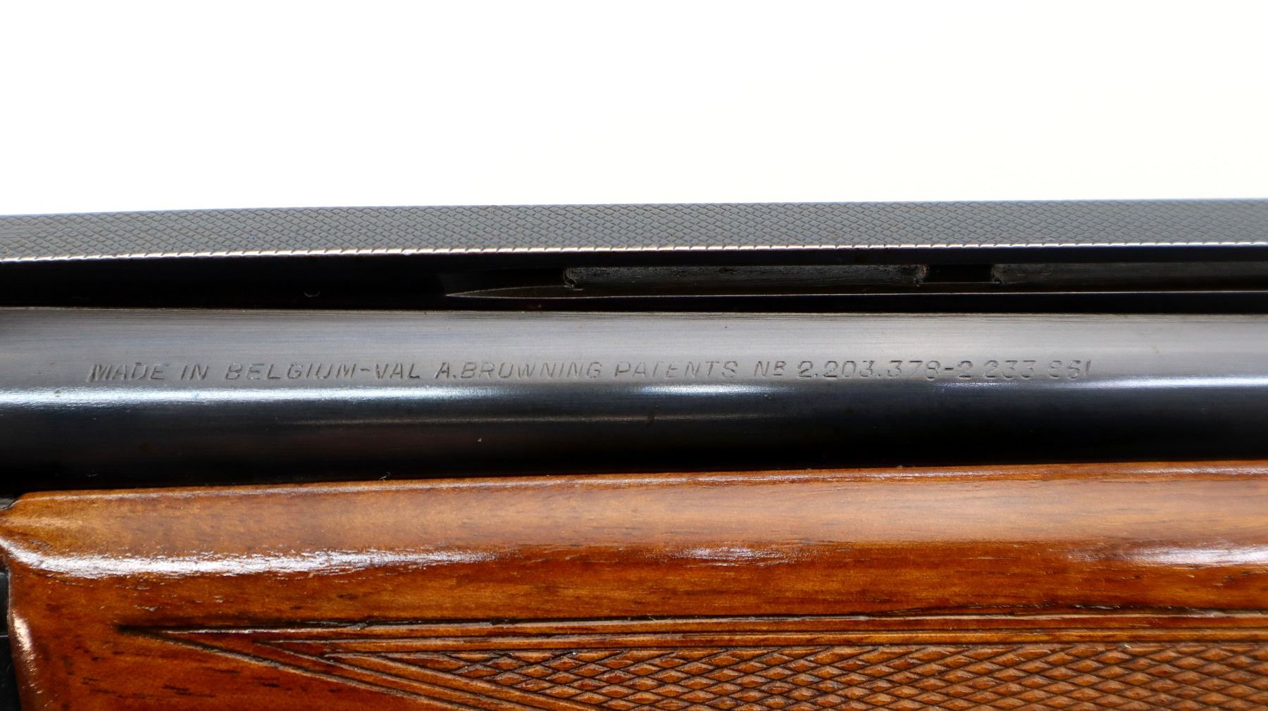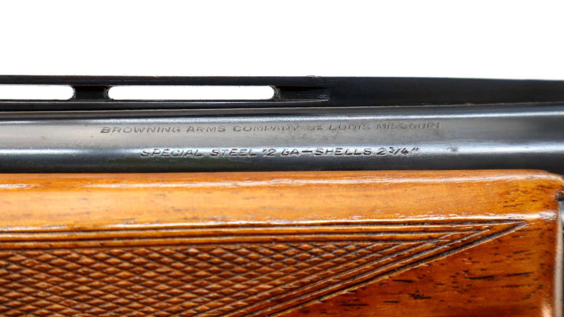 Main Description: Brass bead, blued finish, vent rib, engraved receiver, manual selective safety, ejectors, single inertia trigger. Two piece wood stocks, checkered forearm and pistol grip, Browning logo, black polymer butt plate.