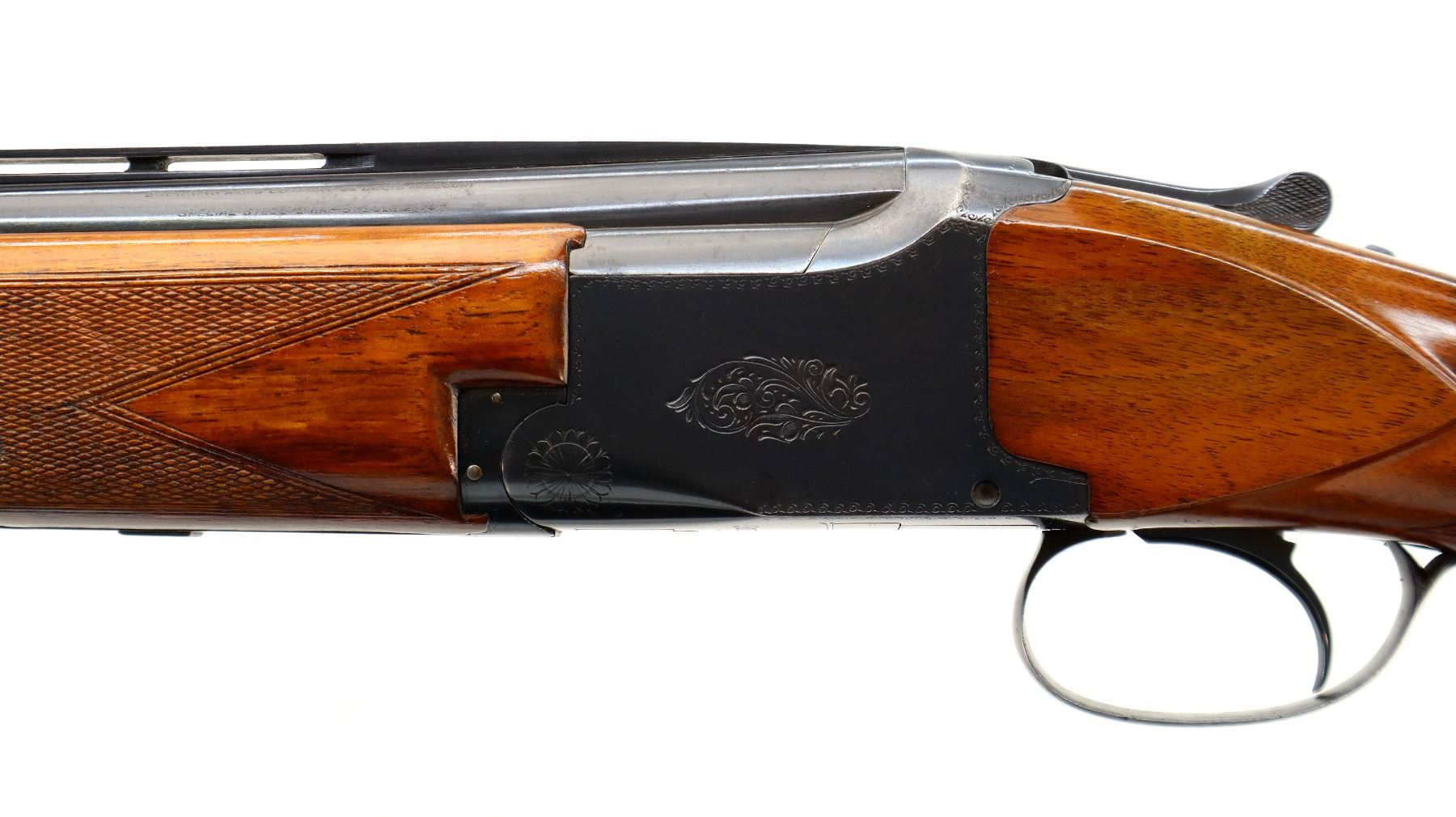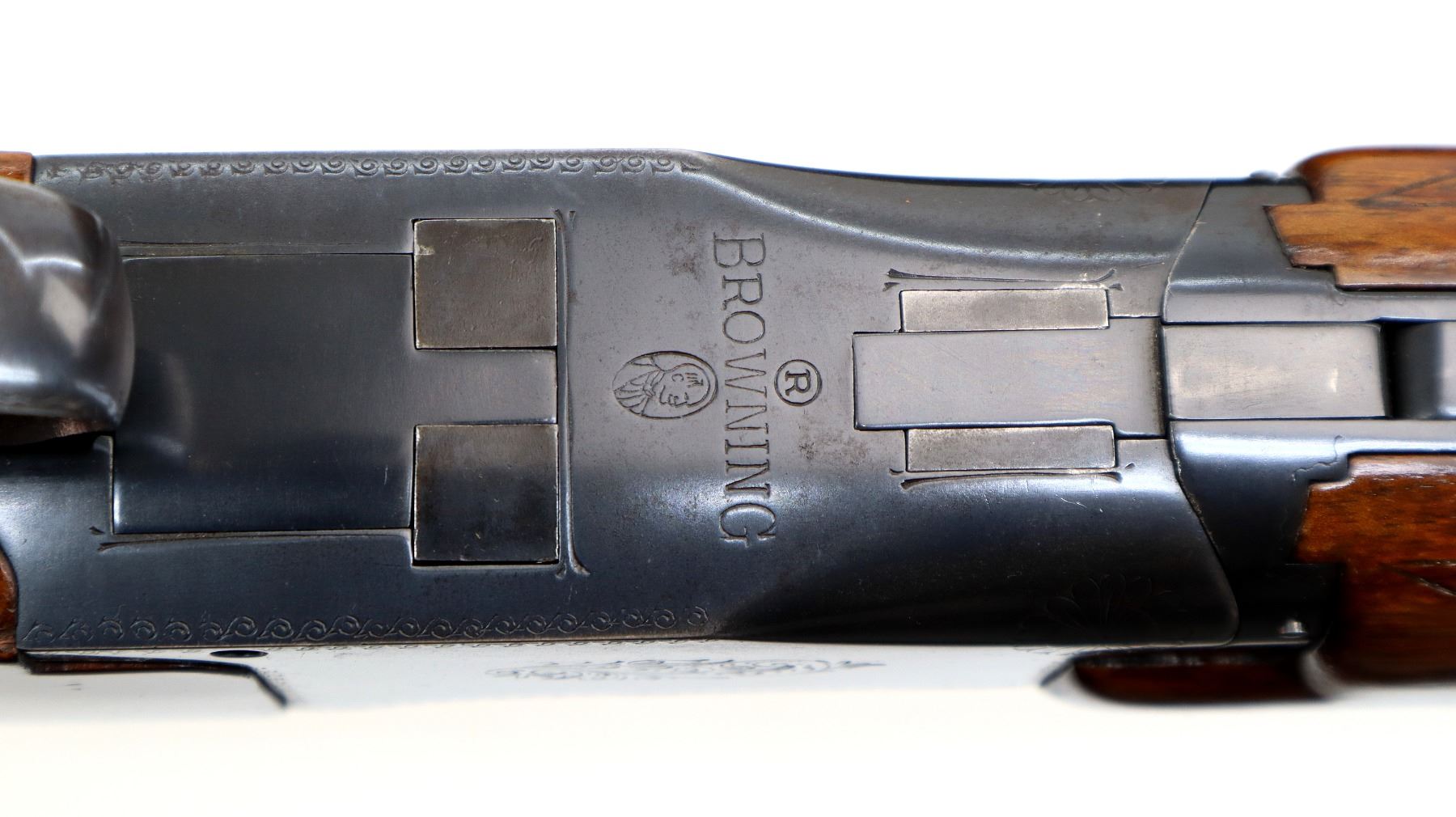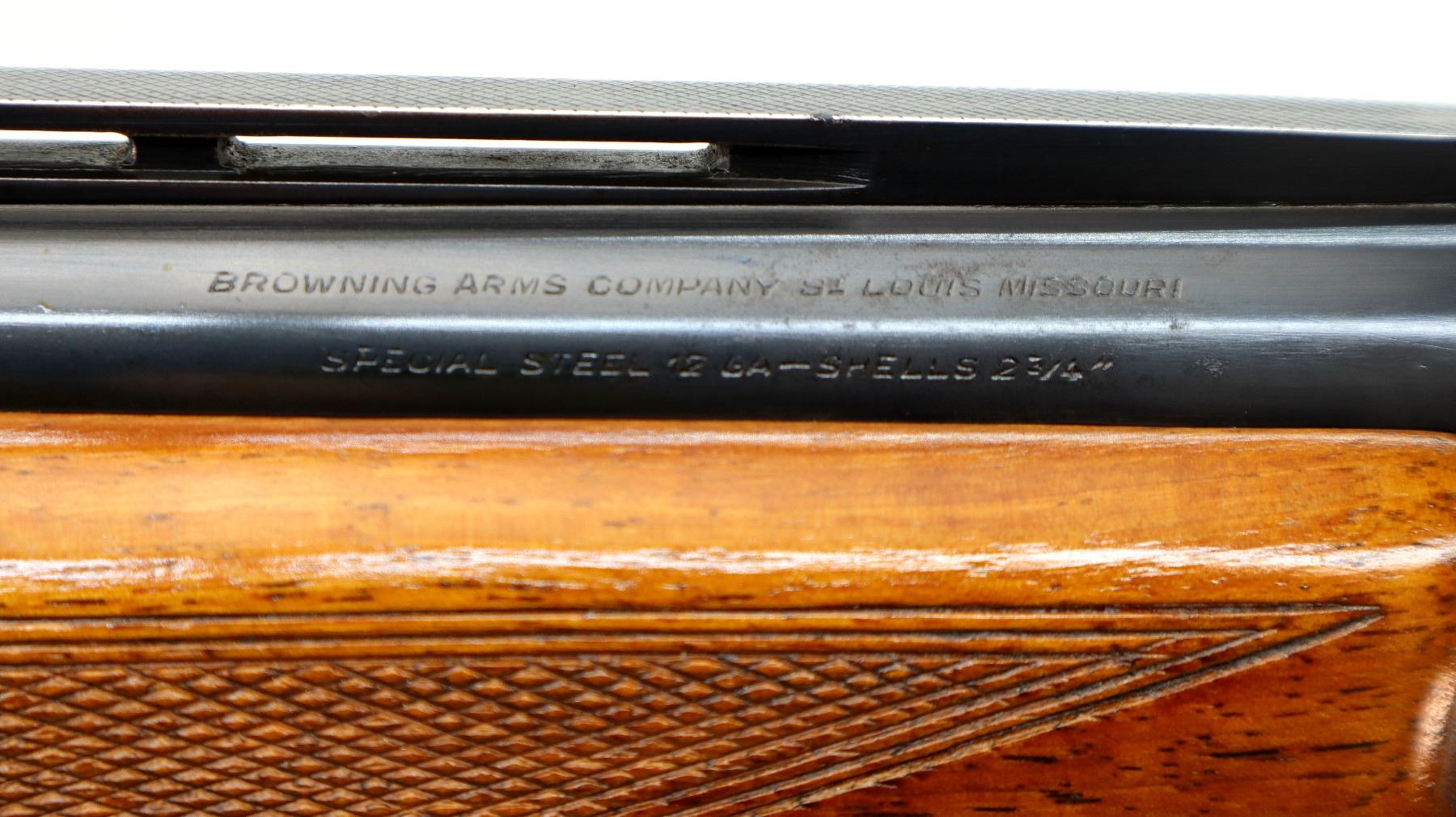 Main Description: Brass bead, blued finish, vent rib, engraved receiver, manual selective safety, ejectors, single inertia trigger. Two piece wood stocks, checkered forearm and pistol grip, Browning logo, black polymer butt plate.
